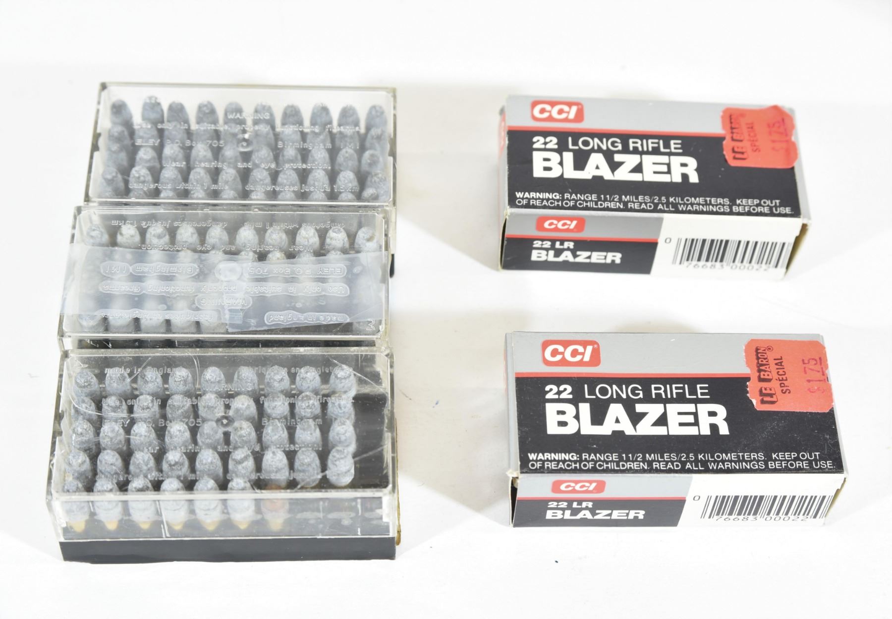 One 50 round CCI Blazer 22LR. One 49 round CCI Blazer 22LR. One 43 round box of Eley Standard 22LR. One 50 round box of Eley LR Pistol 22LR. One 36 round box of Eley LR Pistol 22LR.