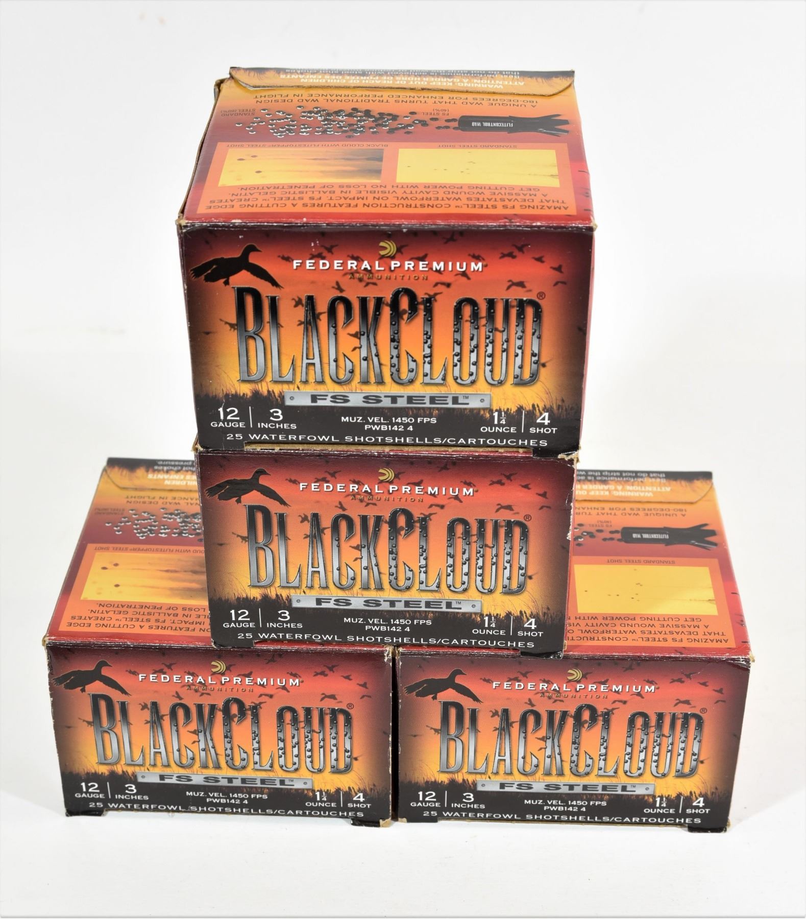 4 full boxes of Federal Black Cloud FS Steel 12ga 3" #4.