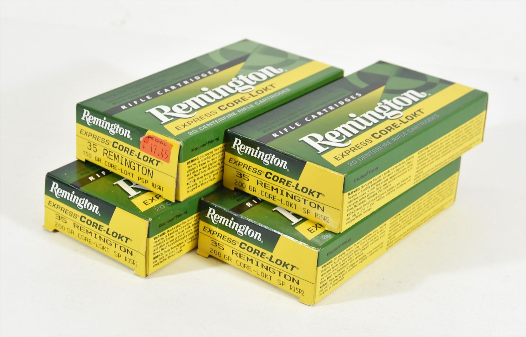 Three 20 round boxes of Remington Express Core-Lokt 35 Rem 200gr Core-Lokt SP ammunition. One 20 round box of Remington Express Core-Lokt 35 Rem 150gr Core-Lokt SP ammunition.