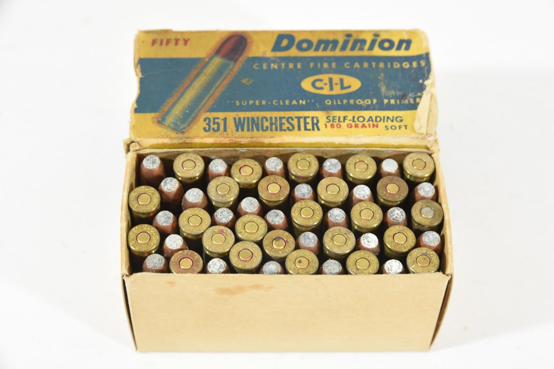 50 round box of CIL Dominion 351 Win self loading 180gr soft point ammunition.