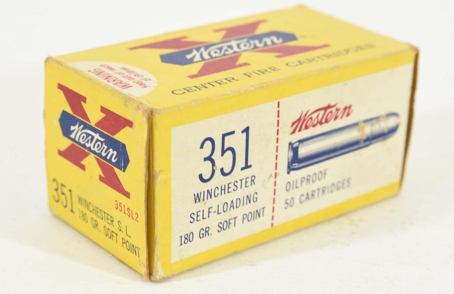 50 round box of Western 351 Win self loading 180gr soft point ammunition.