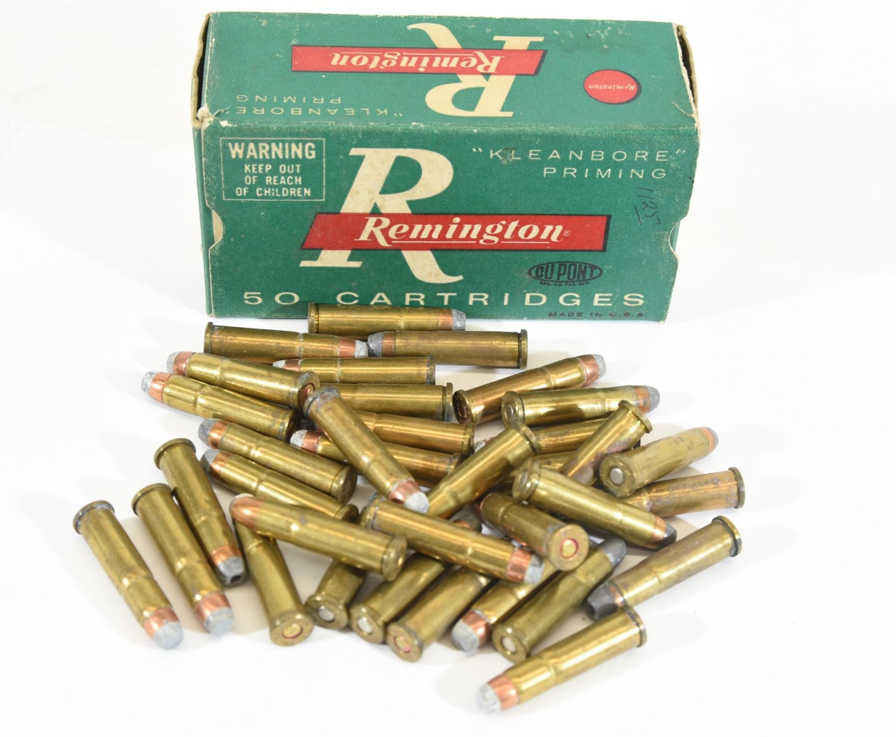 50 round box of Remington KleanBore 32-30 Win 80gr M.C.H.P. ammunition. 35 loose rounds of 32-20 Win ammunition.
