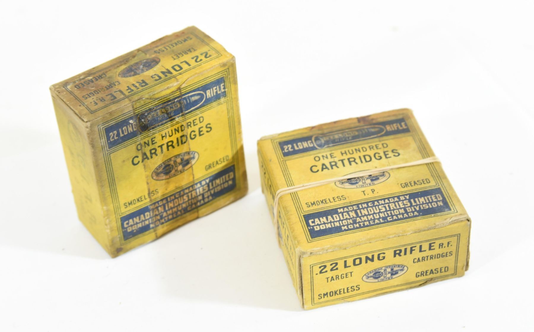 Two 100 round boxes of CIL 22LR smokeless greased ammunition.