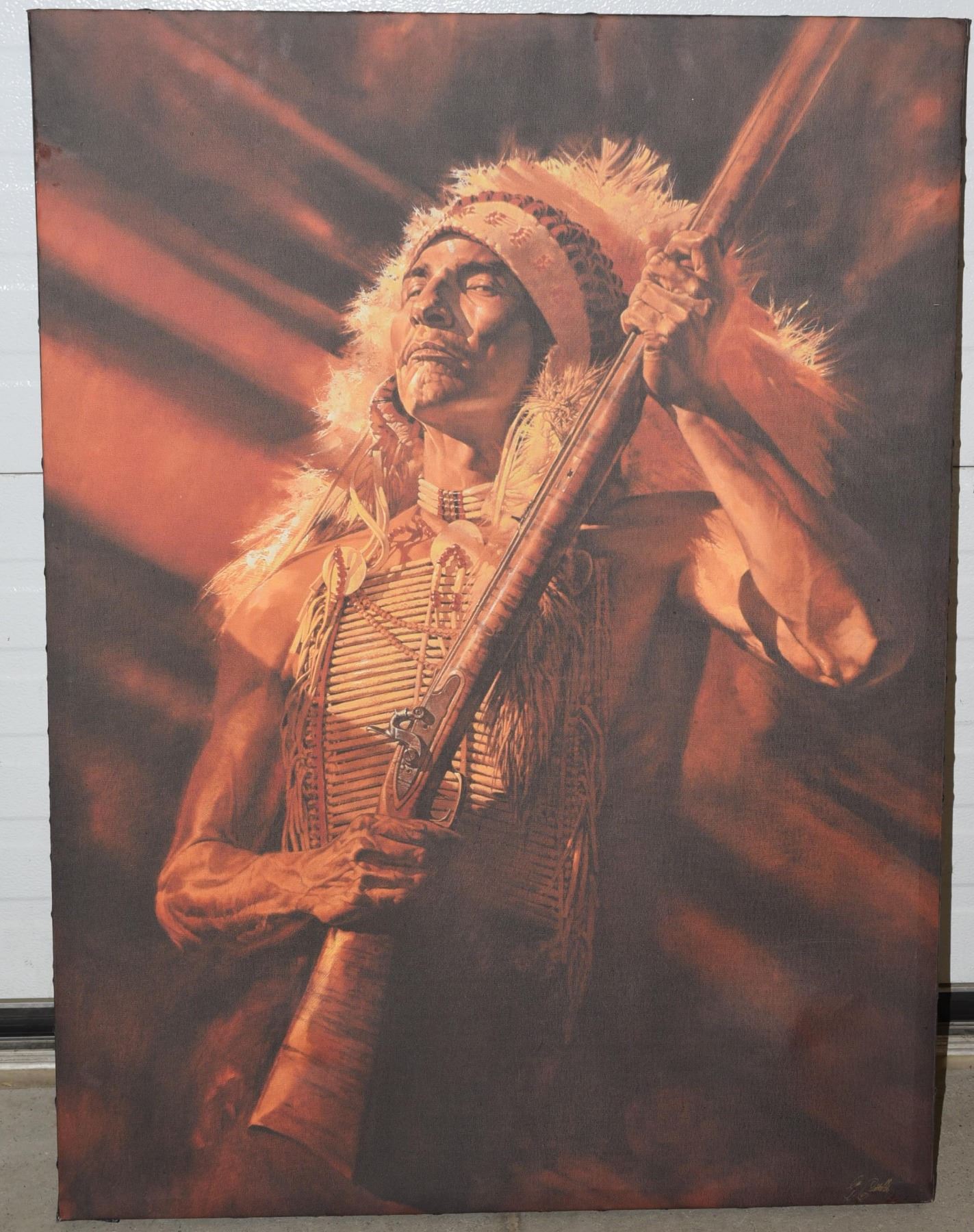 Canvas print of Native American Warrior. 40 x 30 inches. WILL NOT SHIP. MUST PICK UP.