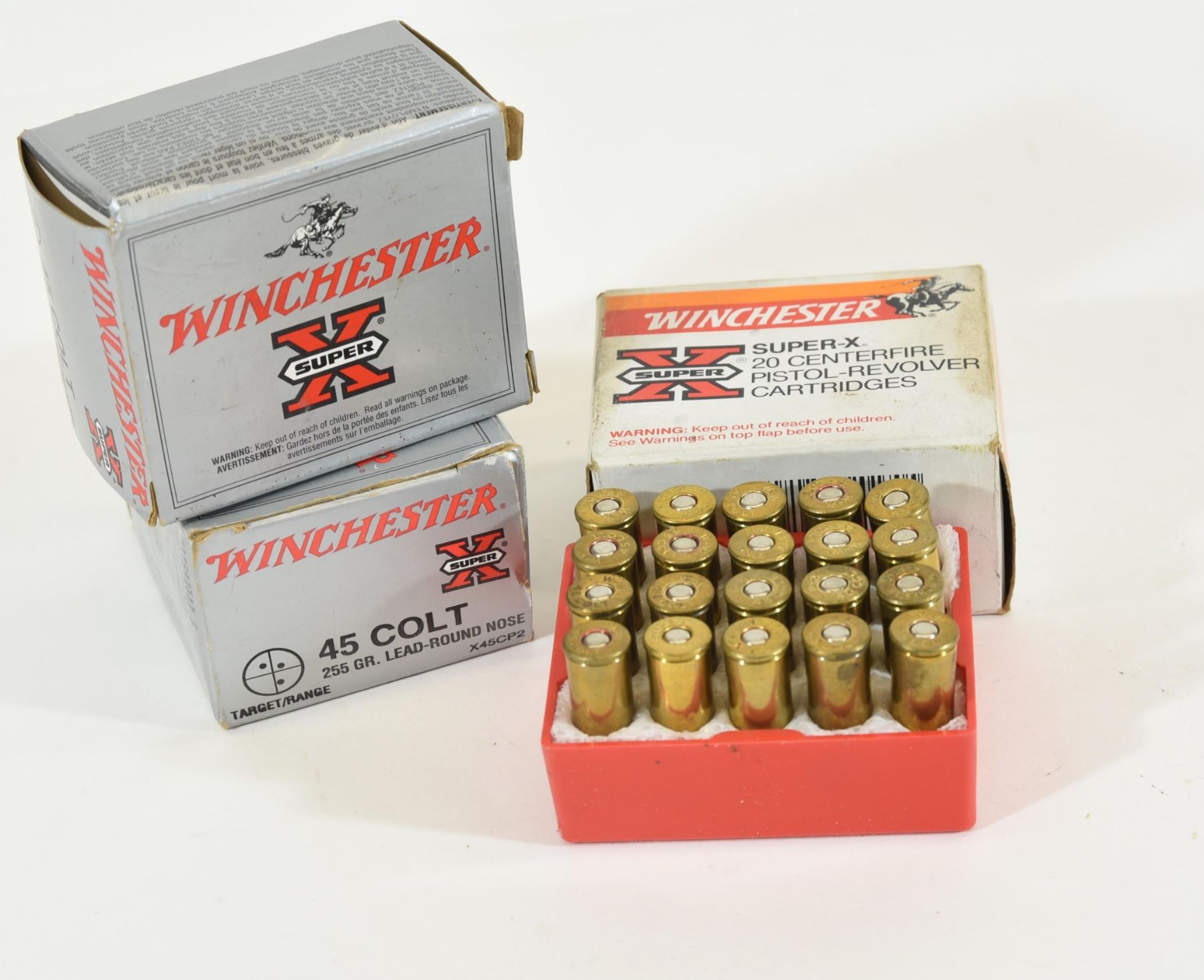 Three 20 round boxes of Winchester Super-X 45 Colt 255gr lead round nose.