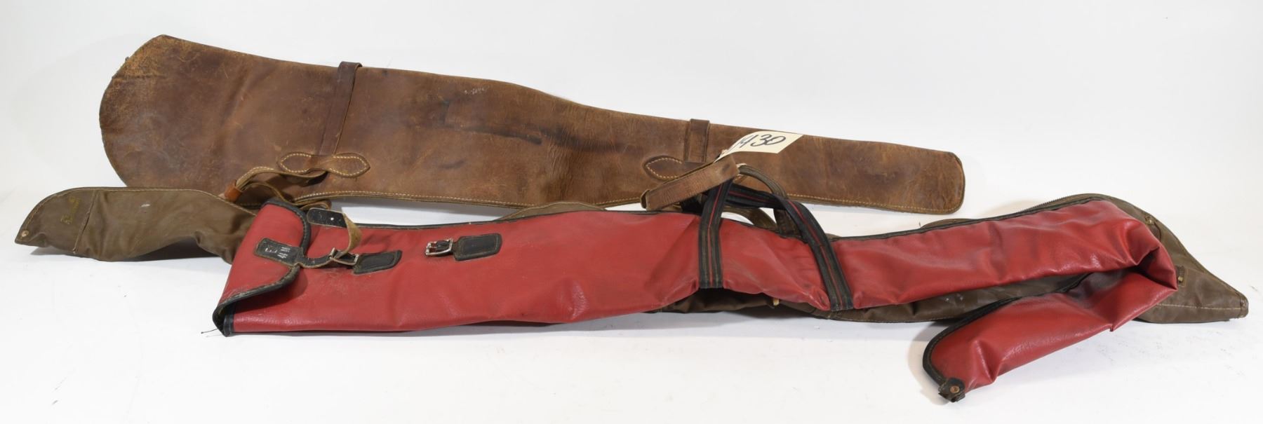 Two soft gun cases. One leather gun case for horse riding.