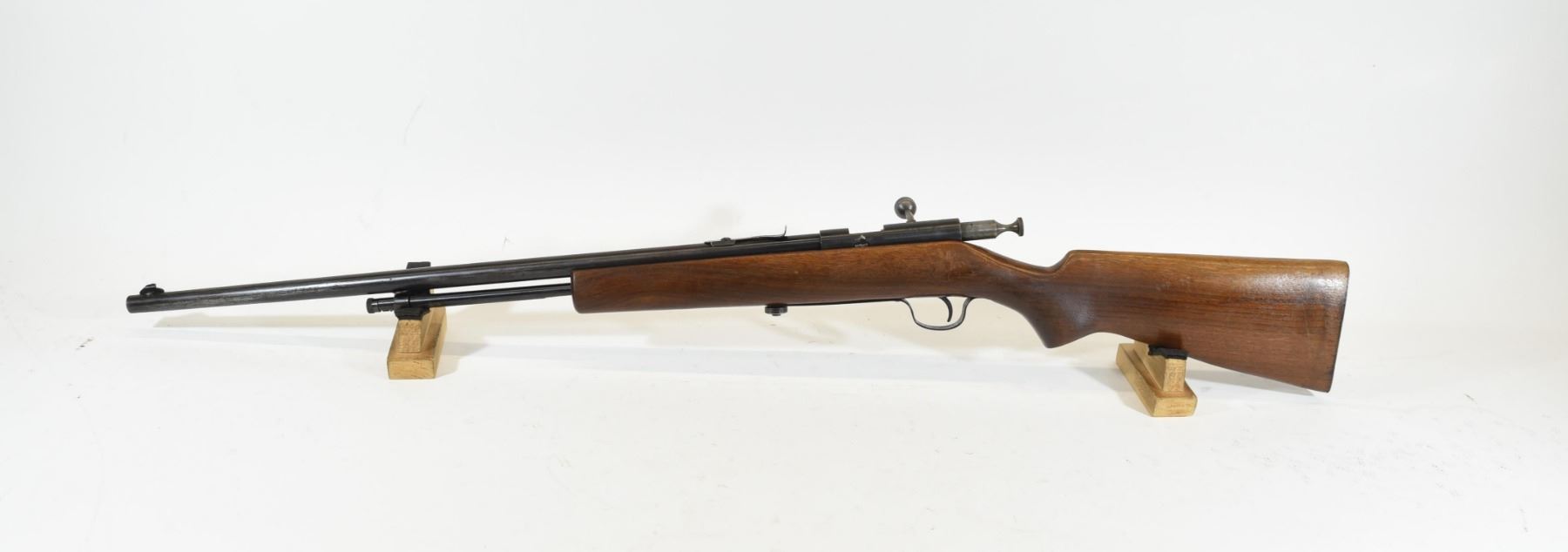 Non-restricted, bolt action, cal. 22, 24" barrel. SN none. Wood has some light scratches, bluing is turning grey, bore is excellent.