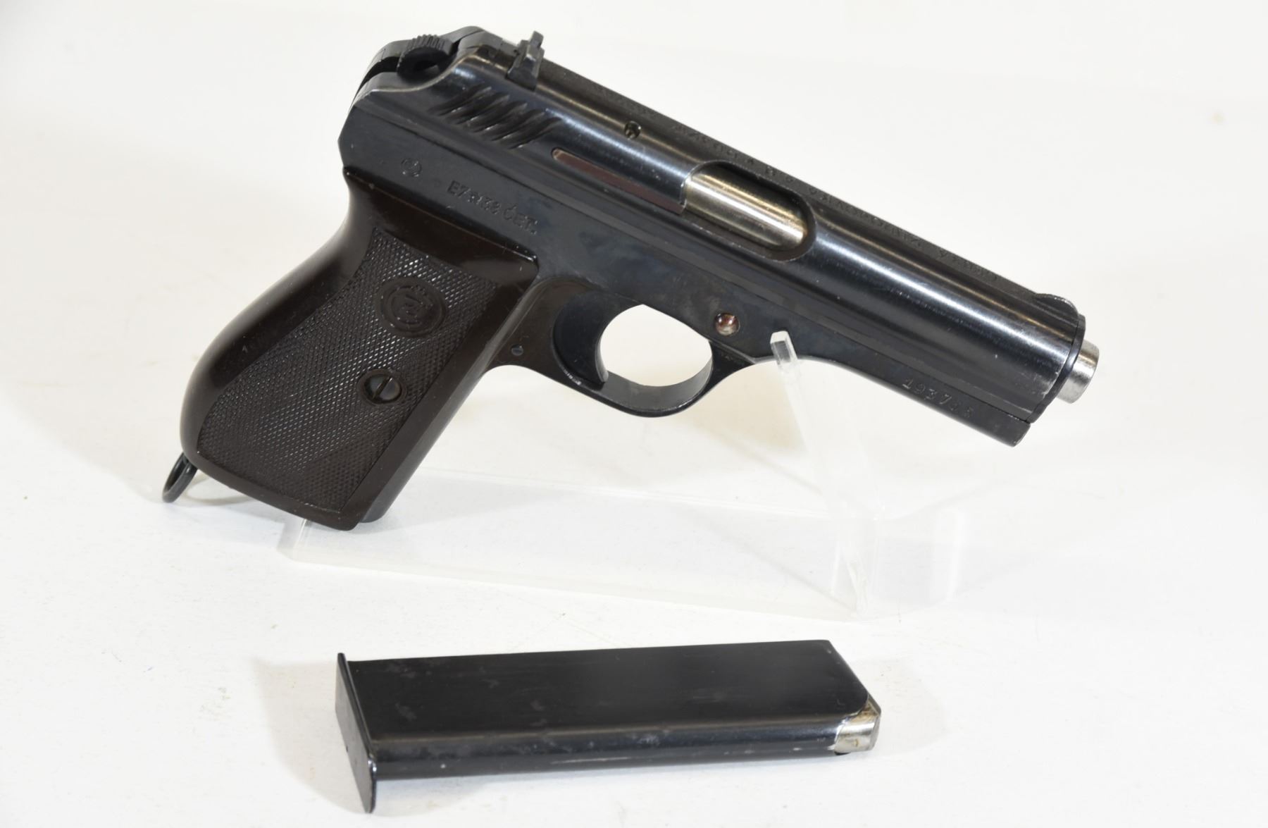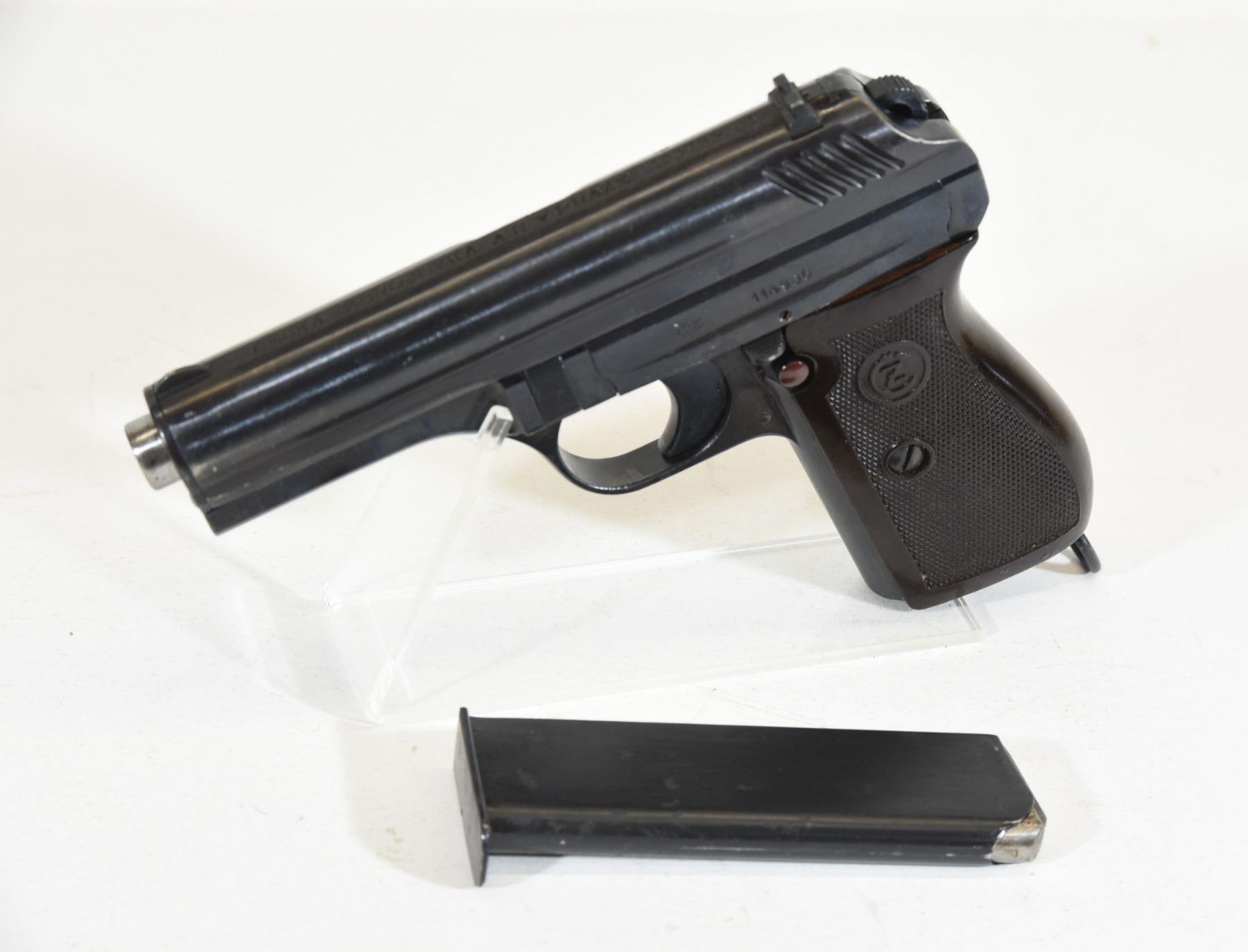 Prohibited, semi-auto, 9mm Browning Short, 90mm barrel, SN 193755. Grips have a couple of marks, bluing turning grey with a few marks, bore very good.