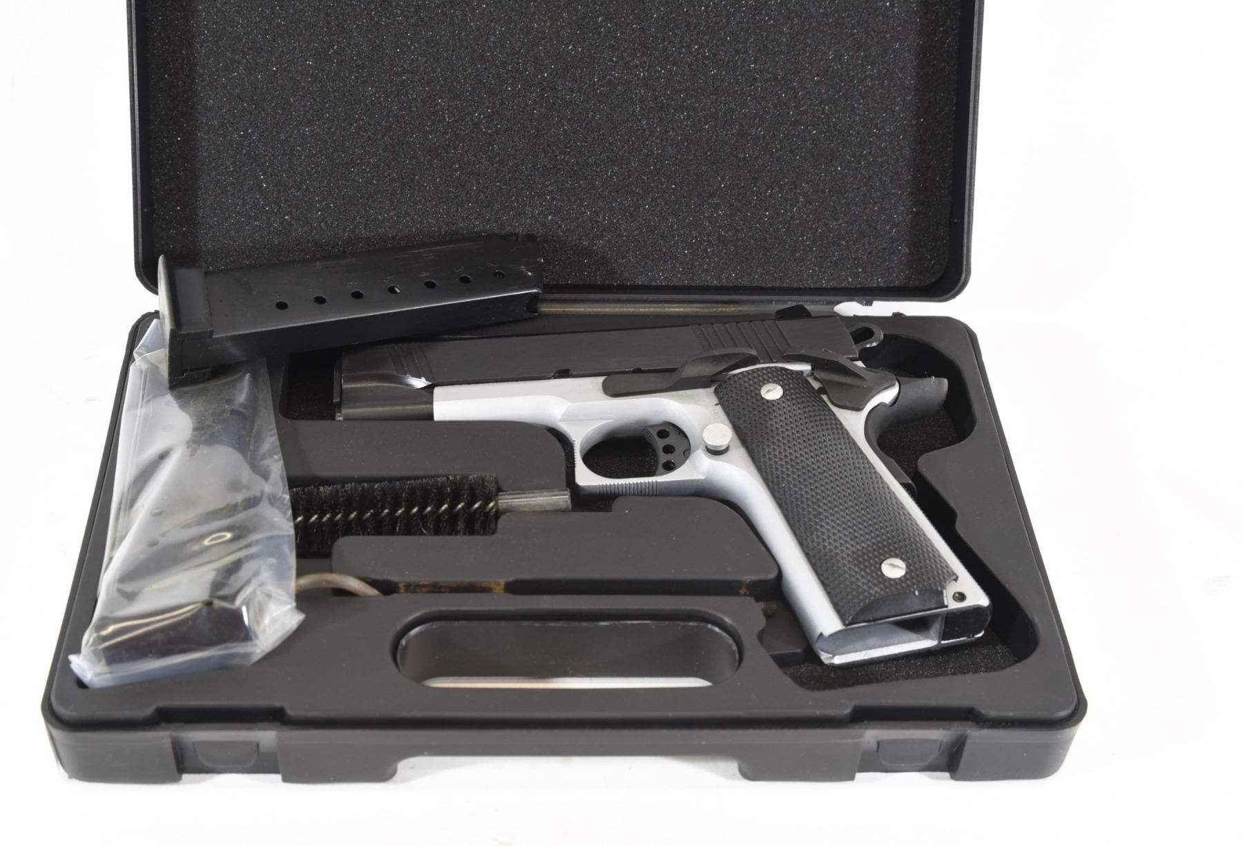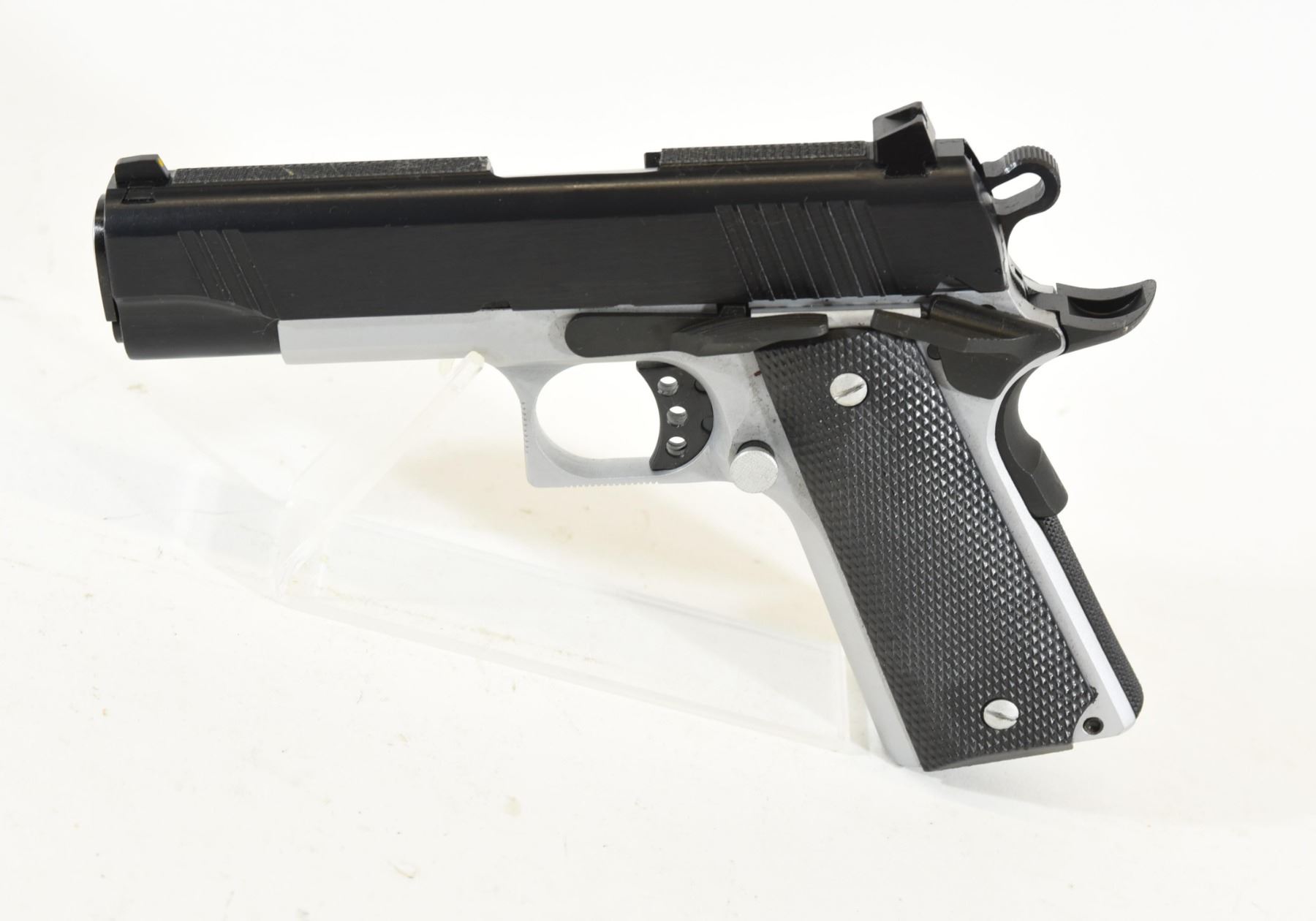 Restricted, semi-auto, 45 ACP, 108mm barrel. SN BC06770. New in box with extra mag and tools.
