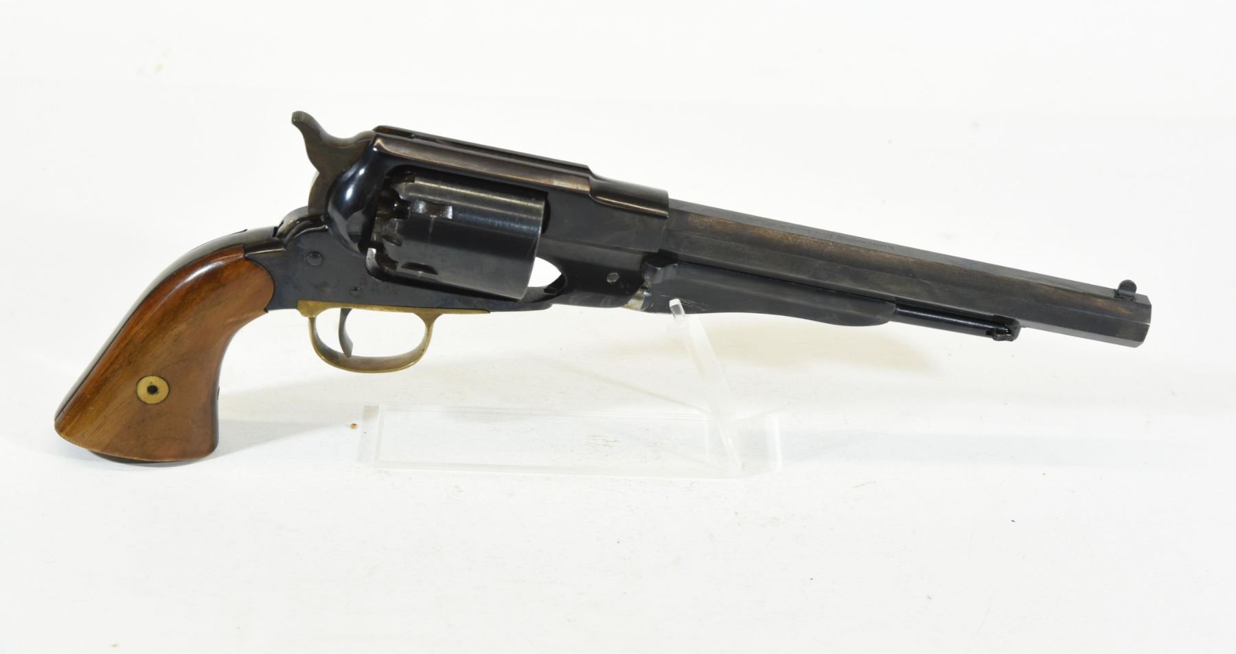 Restricted, revolver 44 Percussion, 203mm barrel. SN 017459. Other than a few handling marks, very good condition.