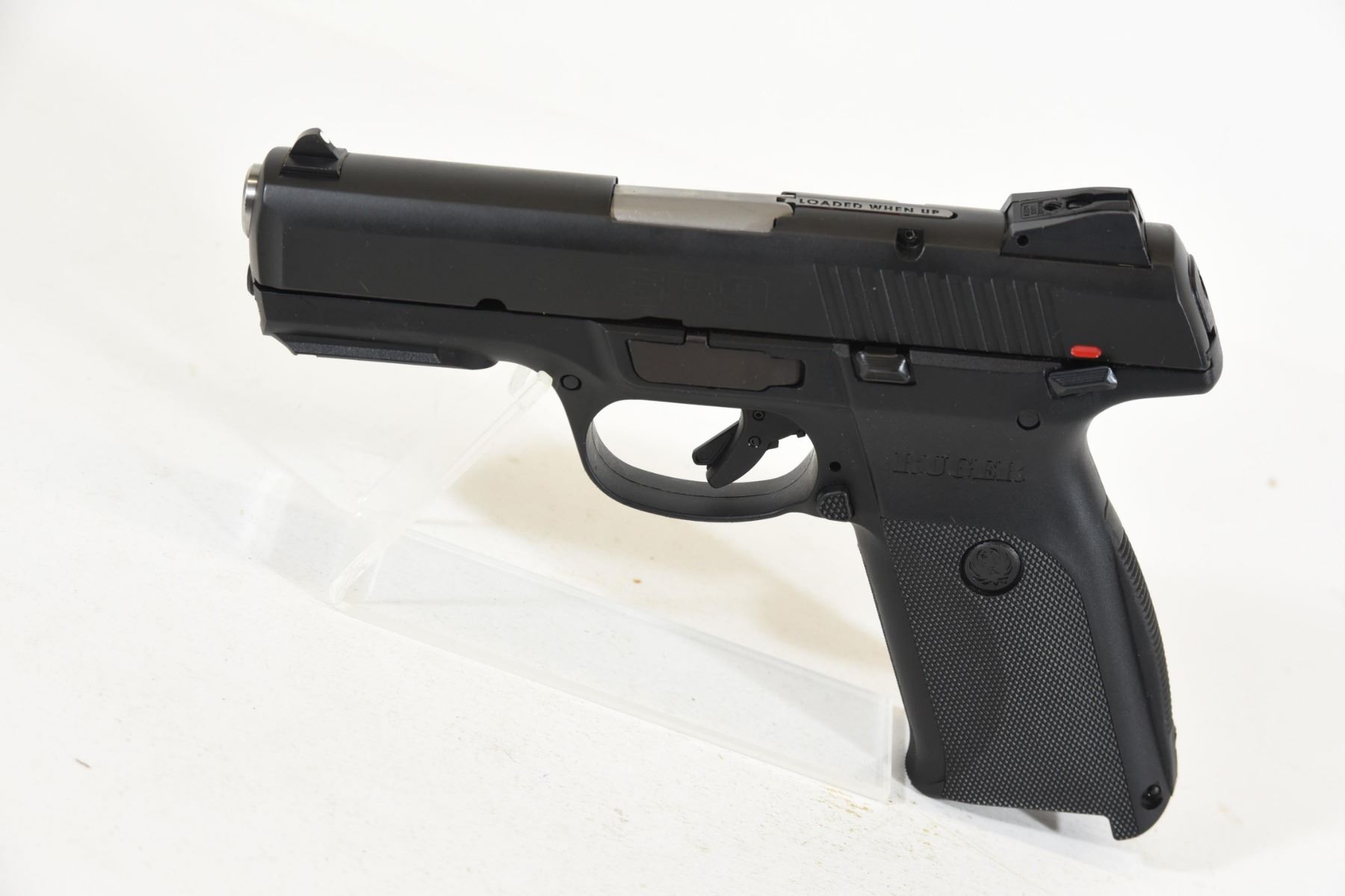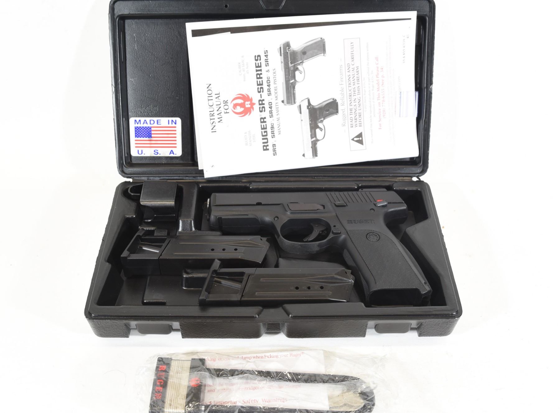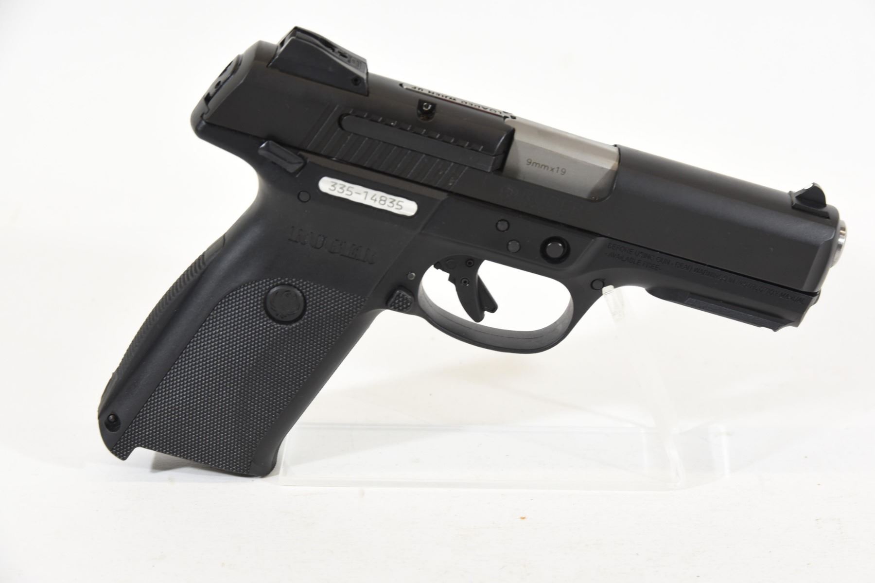 Restricted, semi-auto, 9mm Luger, 106mm barrel. SN 33514835. Like new with original case and extra mag.