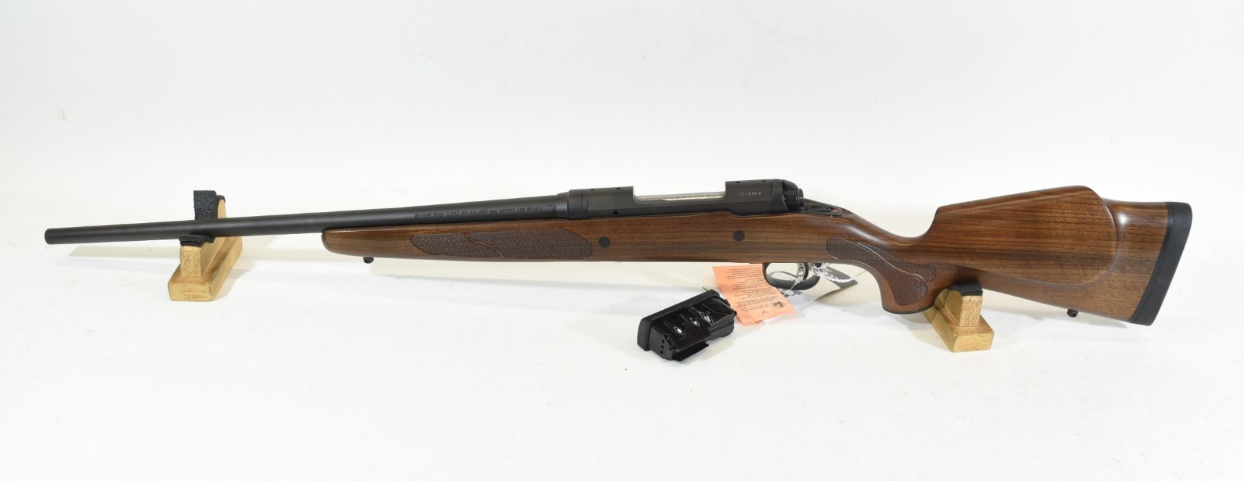Non-restricted, bolt action, 243 win., 20" barrel. SN H934464. Wood is excellent, bluing is matte and in excellent condition, bore is excellent, gun is new in original box.