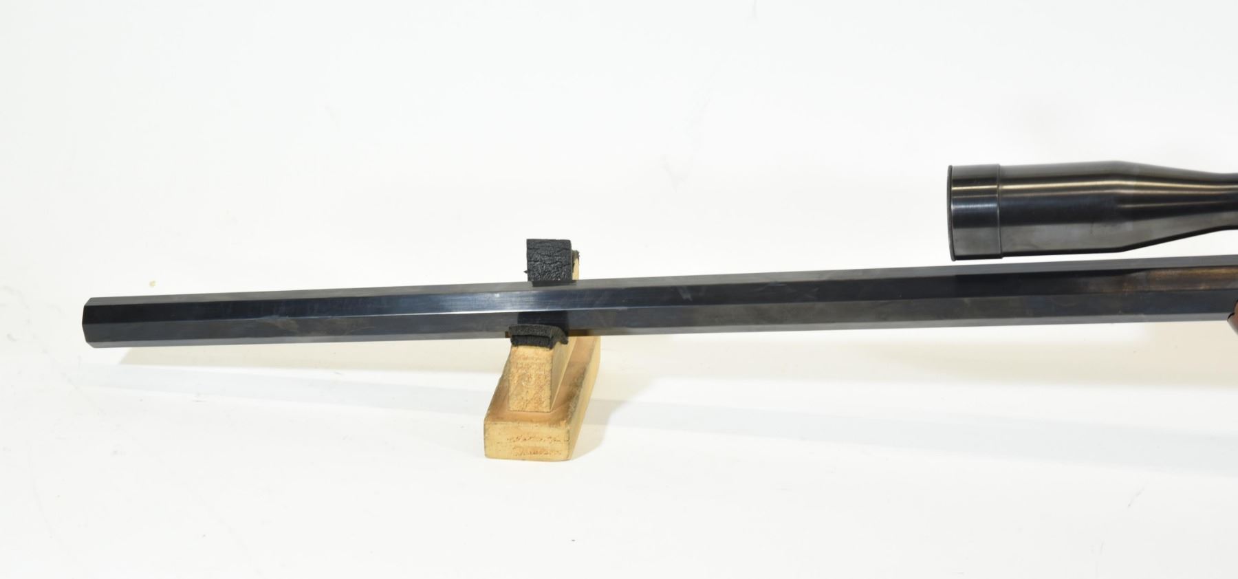 Non-restricted, single shot, 32-40 Win, 30 1/2" custom Joe Kroetch barrel. SN 25474. Comes with J. Unertl Optics Co 8X scope, 50 rnds reloads and 50 brass.