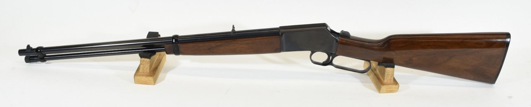 Non-restricted, lever action, 22 s-l-lr, 20" barrel. SN 47B52094. Wood is good with a couple of small dents and some very light scratches, bluing is very good with one very light scratch on the receiver, bore is excellent.