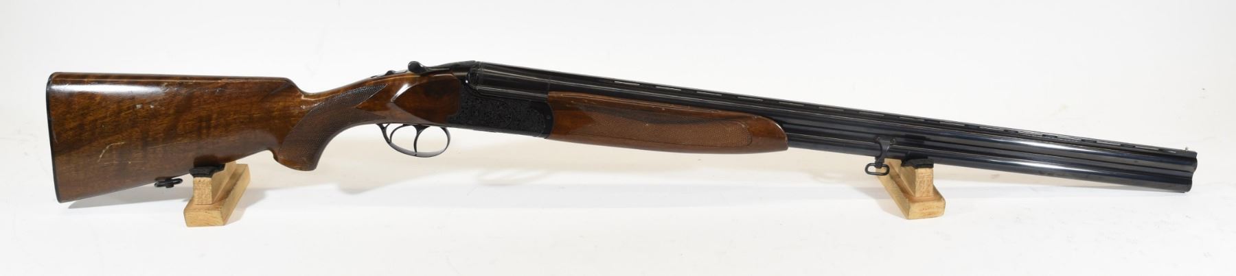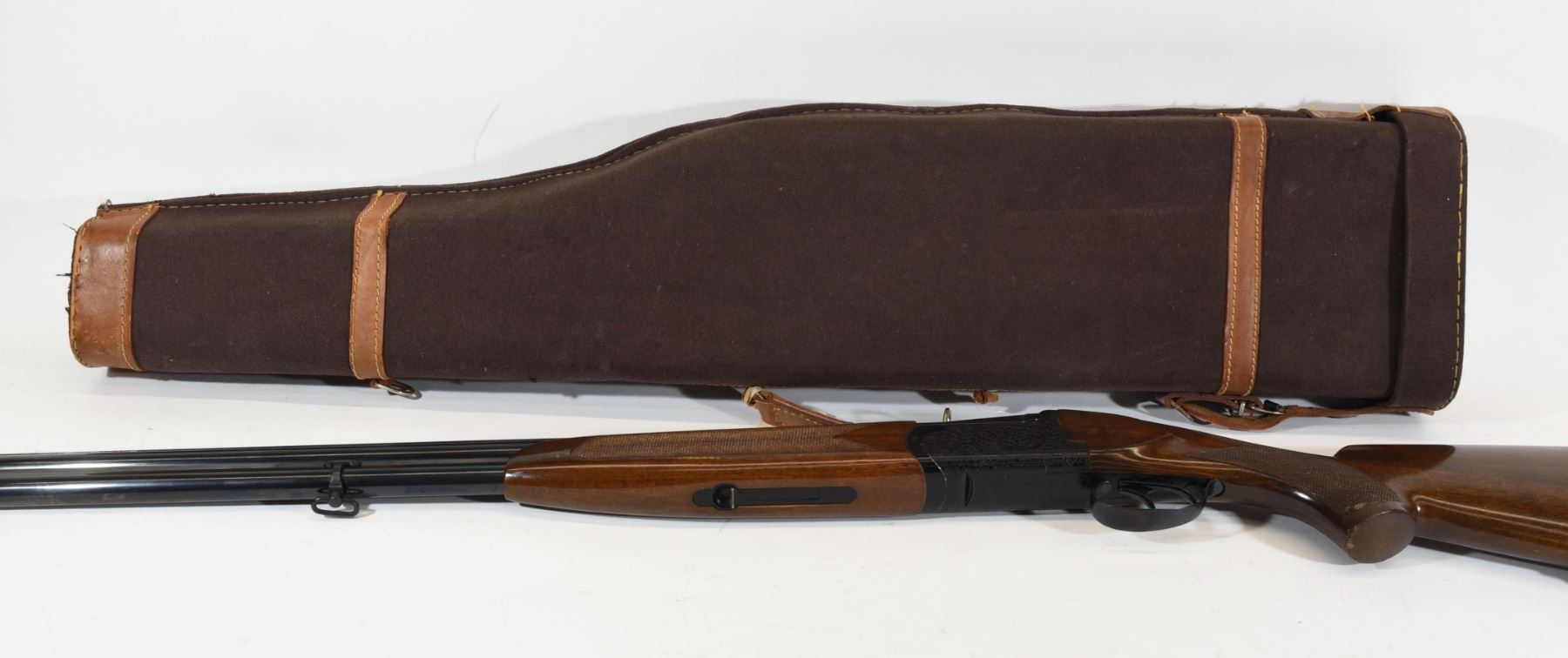Non-restricted, multi-barrel, 20 ga. 3", 28" vent rib full & mod. barrels. SN 4036995. Wood has scratches, bluing is good with a little bit of light surface rust, bores are good, comes with a take down case.