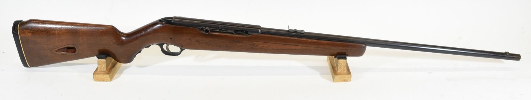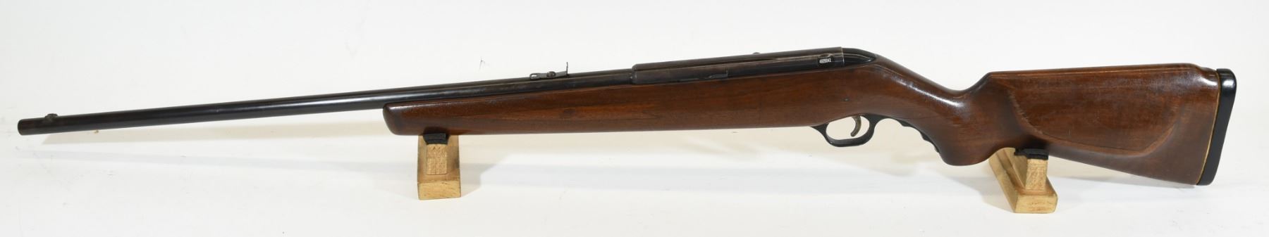 Non-restricted, semi-auto, 22LR, 23 1/2" barrel. No SN. Wood has a crack in forearm and wrist, bluing turning brown, bore excellent.