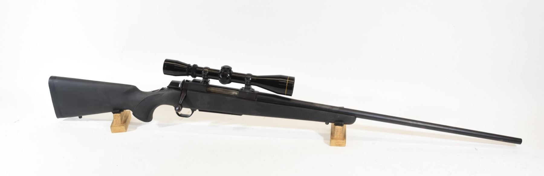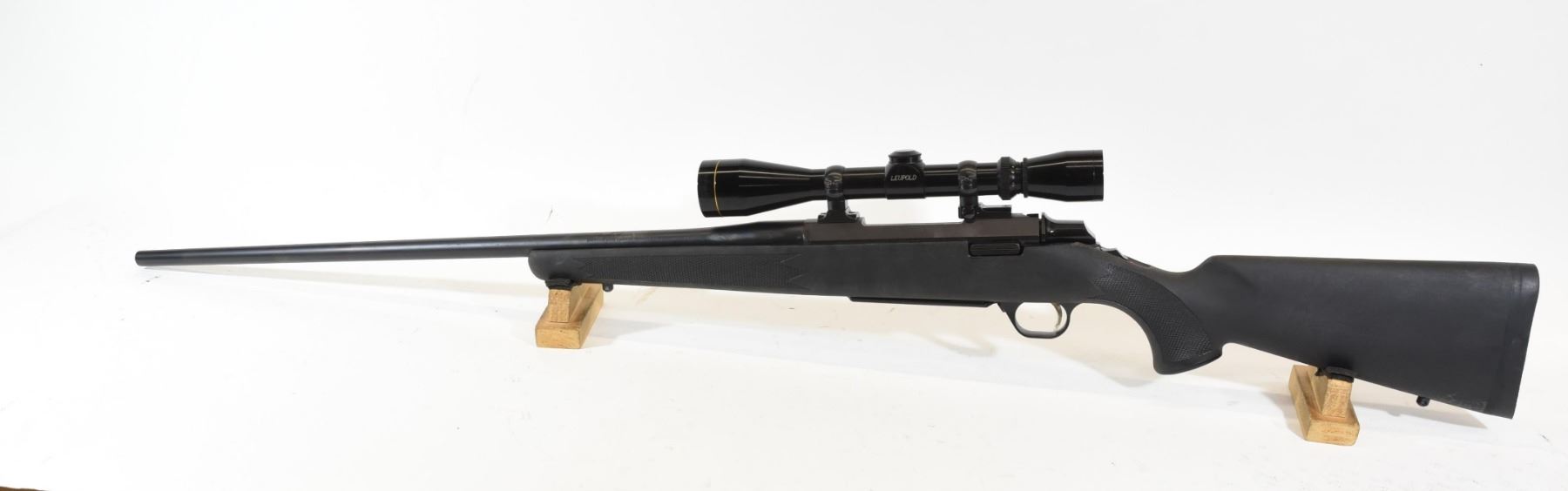 Non-restricted, bolt action, 300 Win Mag, 26" barrel, SN 62033NY7C7. Synthetic stock has a couple small marks, bluing has light pit marks all over, bolt has pitting, bore excellent. Comes with Leupold Vari X II 3-9 x 40 scope.