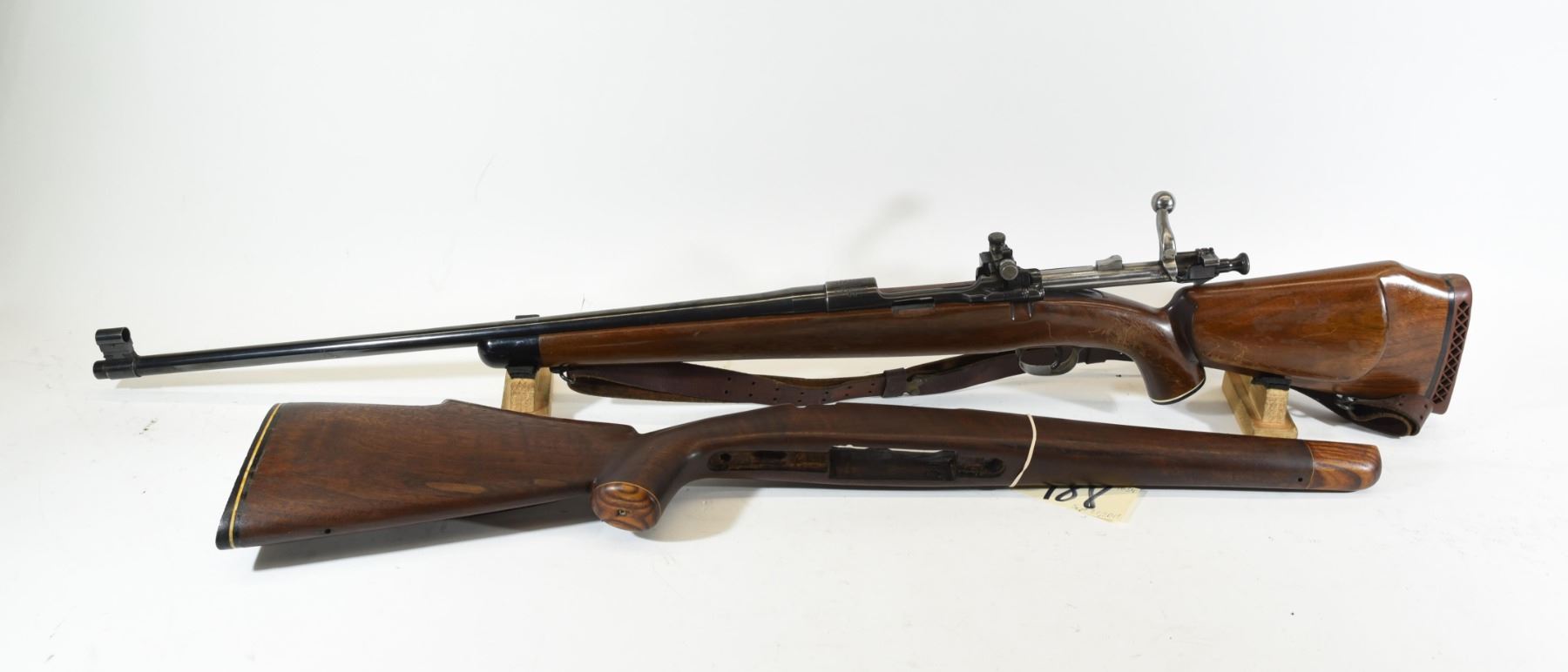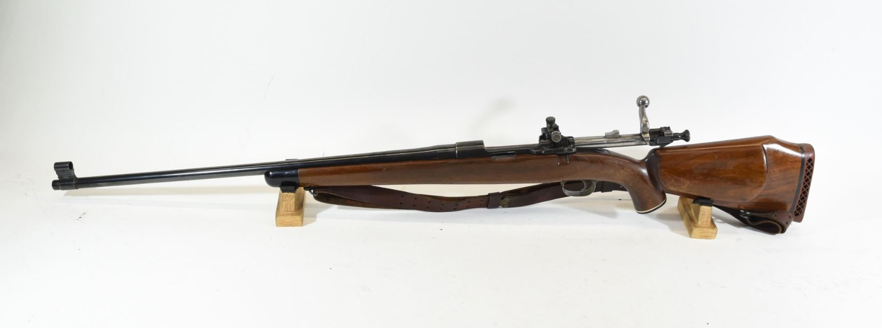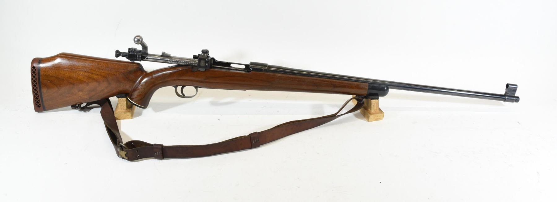 Non-Restricted, bolt action, 30-06 Sprg, 24" barrel, SN 1063635. Wood stock has many scratches on left side and finish is fading. Bluing is good overall with one large scratch and some minor nicks. Bore is excellent. Extra wood stock in good condition.