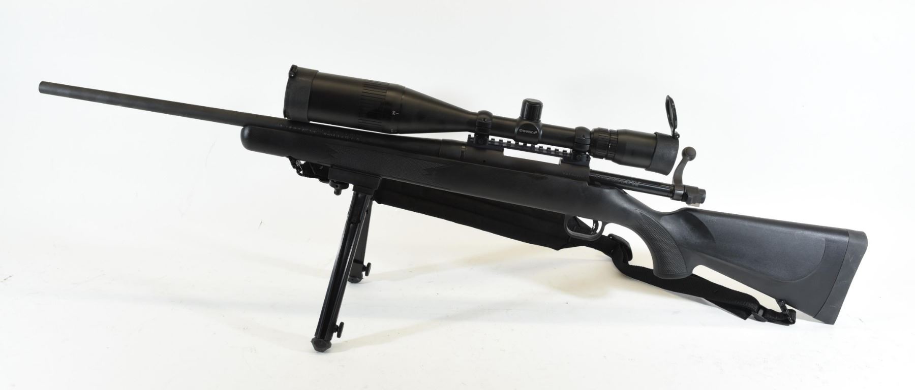 Non-restricted, bolt action, 308 Win, 22" barrel. SN BA199403. Like new. Comes with Barska 4-16 x 50 scope and bipod.