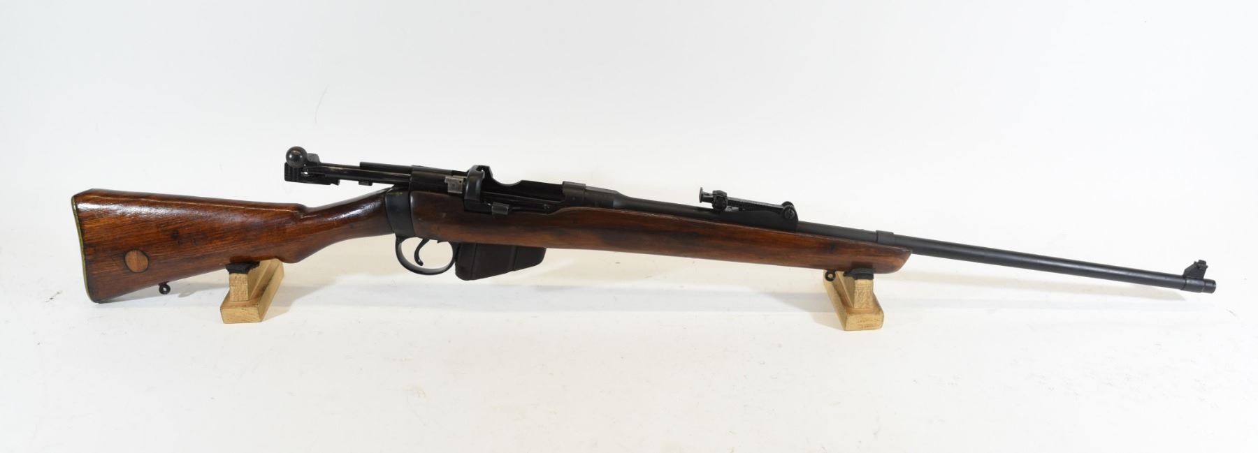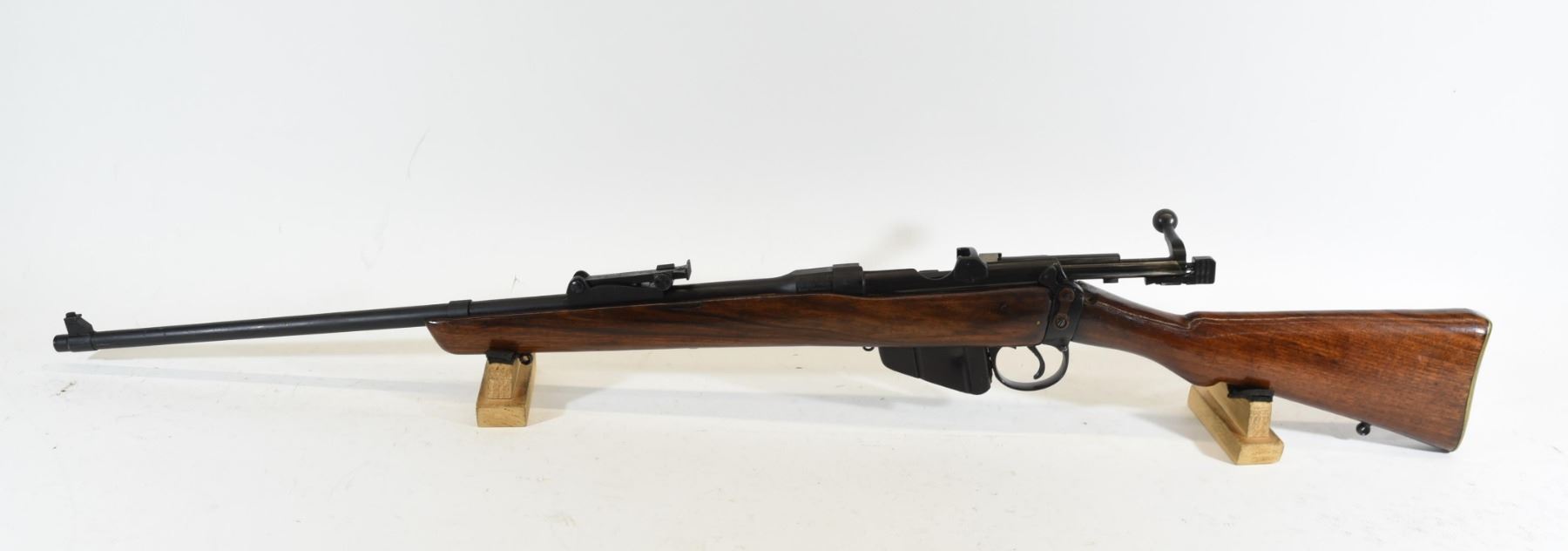 Non-restricted, bolt action, 303 British, 25" barrel. SN 46484B. Wood has some scratches, bluing has some pit marks, bore very good.