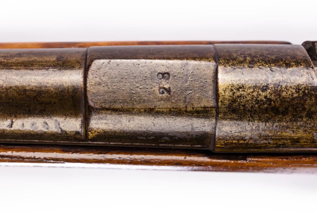 Japanese single shot bolt action shotgun on Mirata type bolt action S/N 31641 on breech and 28 stamped over chamber. 32” barrel and 52” overall. Extractor and firing pin removed (WWII?). Sight on barrel. Light wood. Fairto good. Incomplete as is. (C&R) Est.: $150-$300