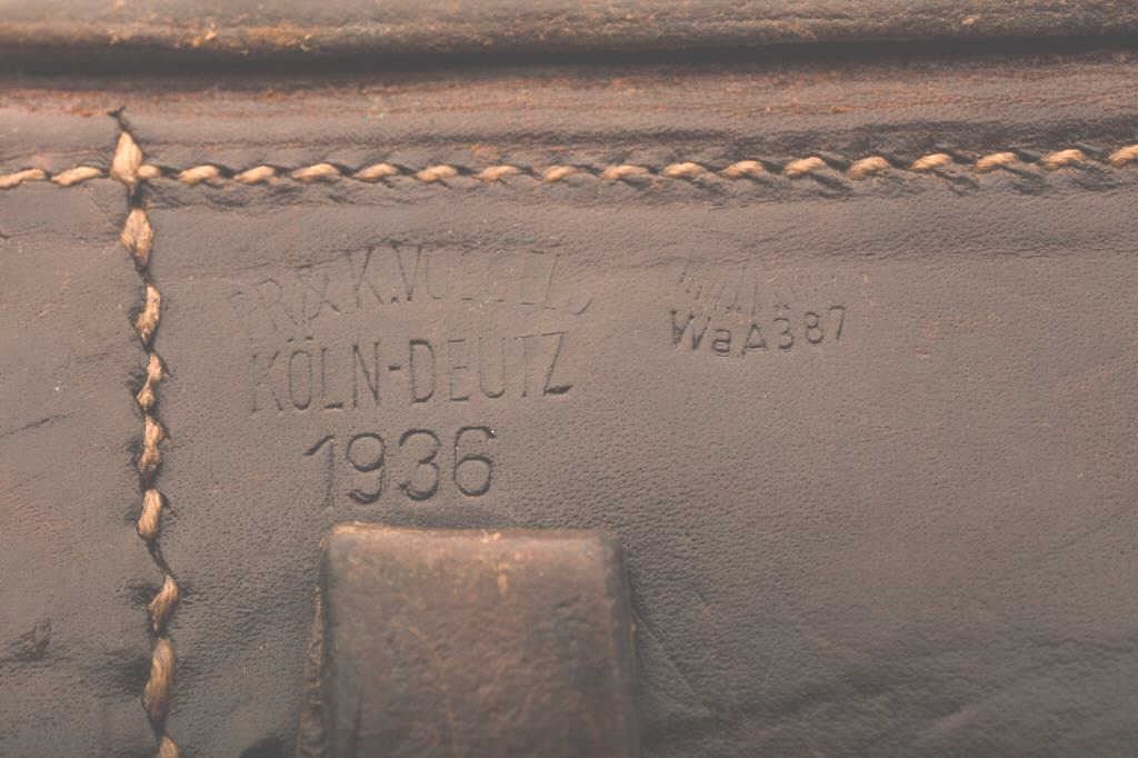 1936 Dated Waffen “U.M.P.” marked Luger holster, by FR + K Vogels -Kolen-Duet-2. In very good plus to almost fine condition. Has period repair using brass stud to belt loop. Est.:$250-500.