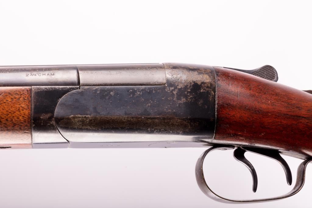 Winchester Model 24 12GA SxS shotgun with 30” barrels choked Improved Cylinder and Full. Very good plus condition with 75%-85% original blue and very good to fine stocks. Bright bores and very tight lock up. Original butt plate. A strong 8 on a 1-10 scale. Pre-War #1203 (The poor man’s 21). (Modern) Est.: $400-$800