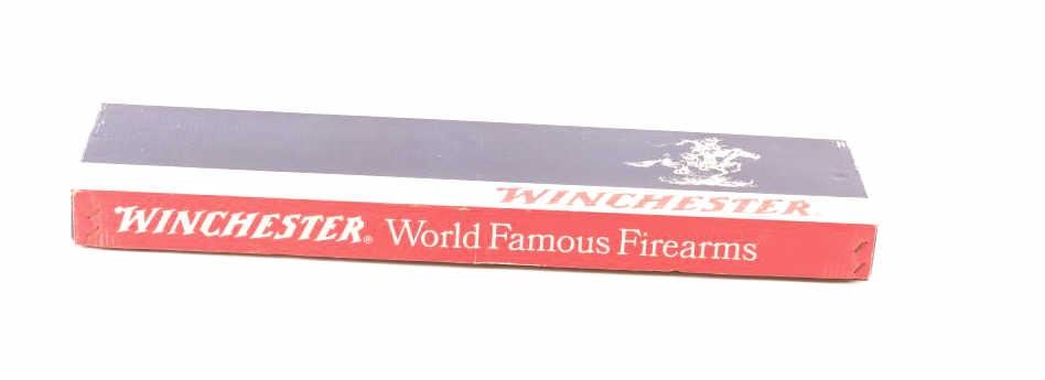 Winchester Model 101 Pigeon Grade Over/Under Skeet shotgun, 12 gauge, Serial #PK381573. The shotgun is as new in the factory cardboard box. The shotgun features 27” barrels with a full-length ventilated rib,both barrels are skeet chokes. The receiver is finished in the white with tasteful scroll engraving on both sides of the action and a pigeon on the underside. The finely checkered wood stock shows light handlingmarks and ends with a plastic butt plate providing a 14 ¼” LOP to a single trigger. The lot includes all associated packaging materials, manual, hang tag and original Winchester factory cardboard box withcorresponding end tag. Est.: $1,000-$2,000. (Modern).