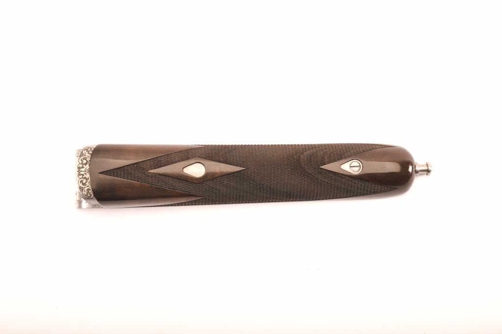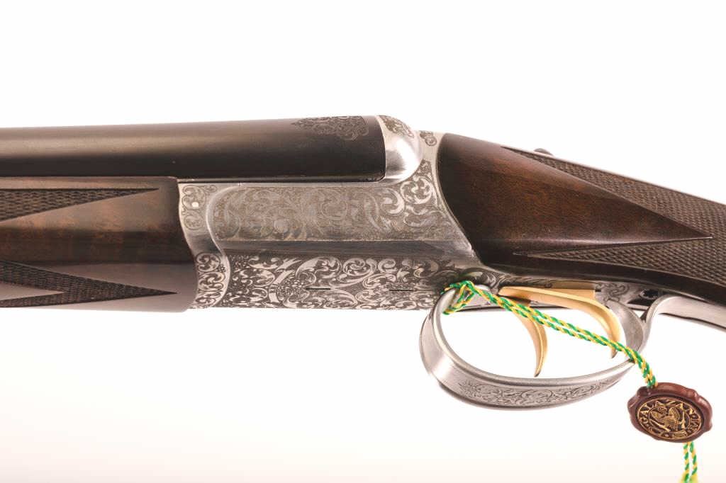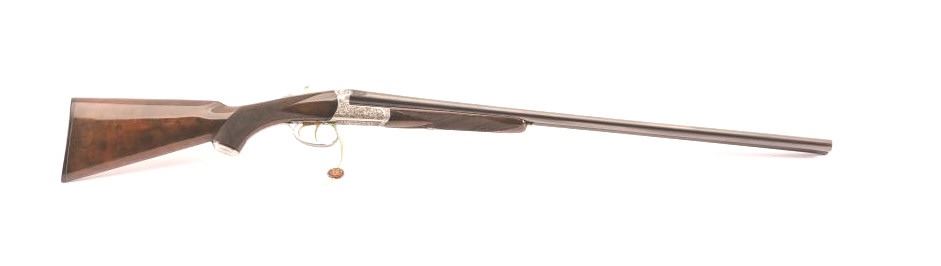 Connecticut Shotgun Company RBL Launch Edition side by side shotgun, 20 gauge, Serial #RBL000511. The shotgun is as new in the factory luggage case. The 28” barrels are choked Modified and Full with afull-length traditional game rib and brass bead front sight. The receiver is finished in French Grey with over 90% coverage in beautiful scroll engraving. The shotgun features double gold triggers and automaticejectors. The finely checkered stock is stunning American Black Walnut with beautiful figure and a hand rubbed satin finish. The butt stock ends with a hard plastic butt plate providing a 14 ¼” LOP to the fronttrigger. The lot includes a Connecticut Shotgun MFG. Co. luggage case lined in maroon baize with all accoutrements including silver plated snap caps, oiler, choke set and shooting glasses. A top of the line roundbody side by side shotgun with all the accessories that appears unfired. Est.: $1,400-$2,800. (Modern).