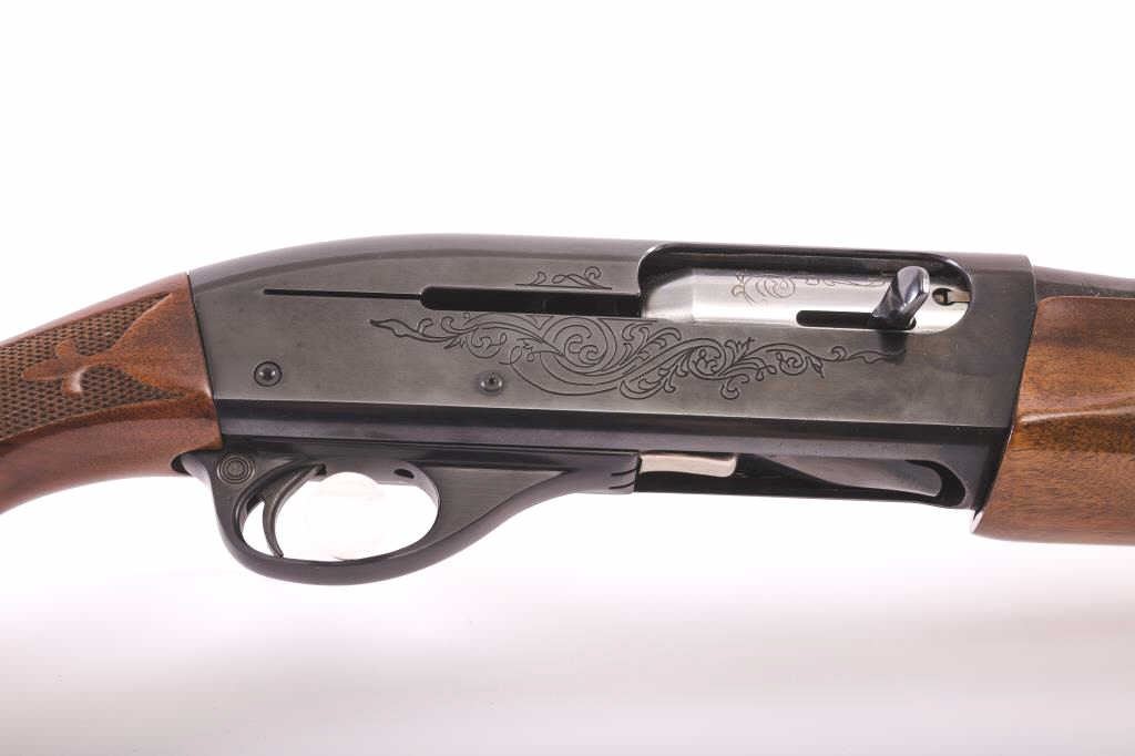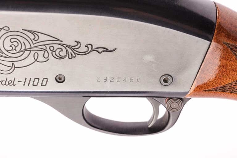 Remington Model 1100 semi-automatic shotgun, 12 gauge, 30” barrel, blued finish, checkered finely grained wood stocks, S/N 292048V; overall fine condition with majority of original blued finish remaining on metalsurfaces, fine bore, crisp action and markings, fine wood stocks. (Modern). Est.: $300-$600.