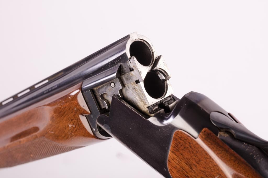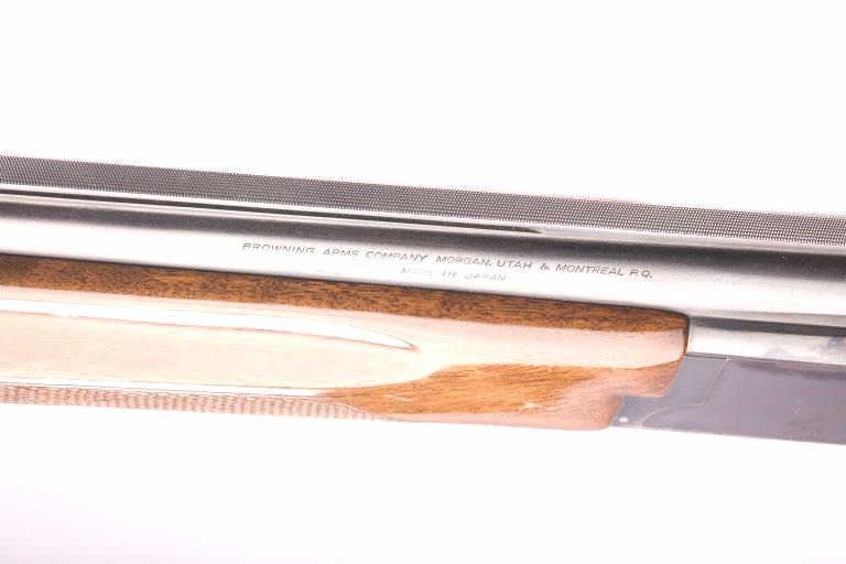 Browning Citori Over/Under shotgun, 12 gauge, Serial #02093-RTJ53. The shotgun is in good overall condition with 28” barrels with a full-length ventilated rib. The metal surfaces retain the majority of their bluefinish with wear at the muzzle and considerable wear on the underside of the receiver causing some loss of finish. The barrel is marked, “Special Steel” and will chamber 2 ¾” and 3” shells. The checkeredwood stocks are in good condition with mars and compressions consistent with field use. The buttstock ends with a ventilated rubber Browning marked pad providing a 14 ½” LOP to a single gold trigger. The bores are good,the action is crisp and the markings are sharp. Est.: $400-$800. (Modern).