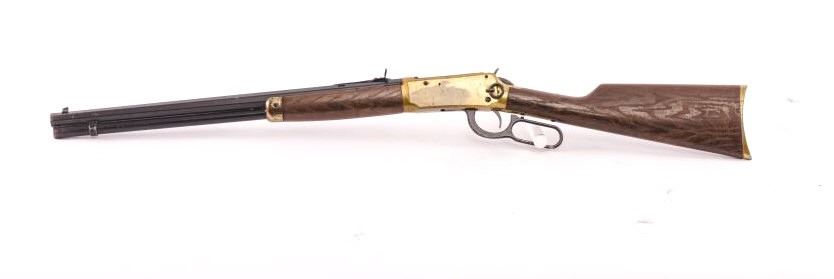 Sears & Roebuck marked 22 BB gun Patent #799.19052, #275586324392, Reg. NO214073. Era of ‘66 Centennial Winchester as companion piece. Very good condition. Minor loss of finish and some use. Gold finish frame. Est.: $100-$200