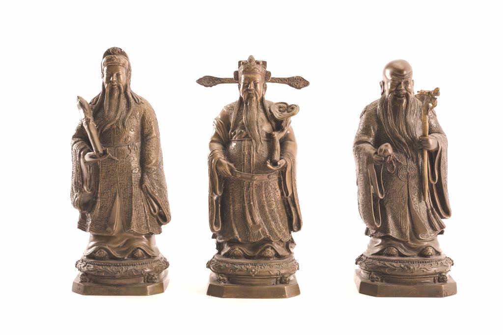 Cast bronze set of three Asian wise men or mythological figures. Bronze measures 12” in height age range 50-70 years. Est: $300-600