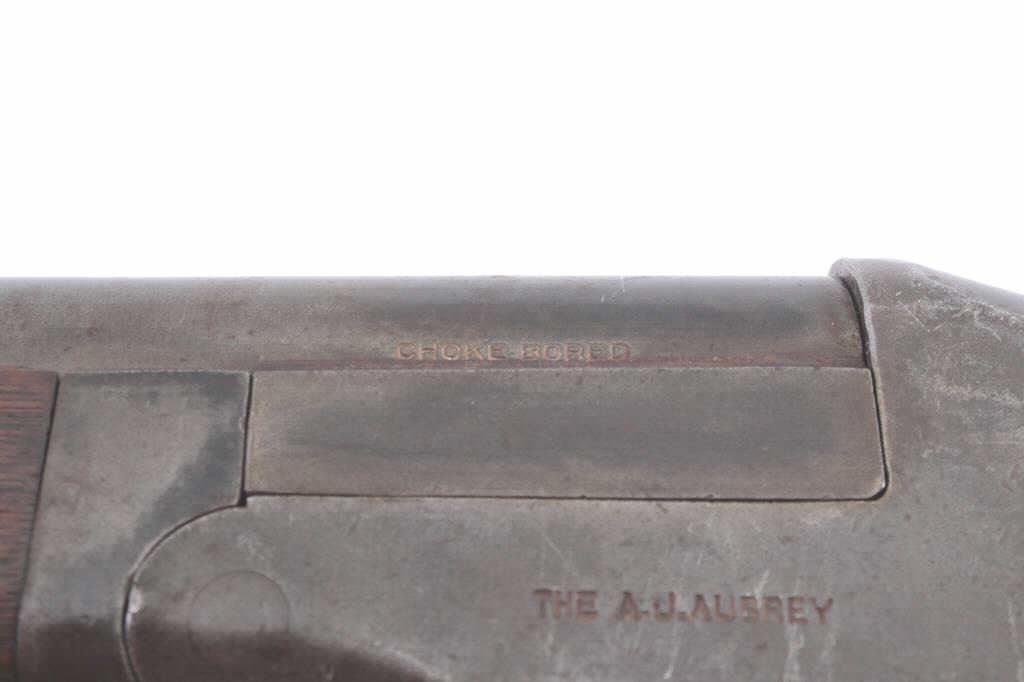 Aubry by Meridian Firearms in 12GA. Steel barrel. Circa 1900-1915. NSNV. Stock replaced. Not working. Fair to Poor. (C&R) Est.: $30-$60