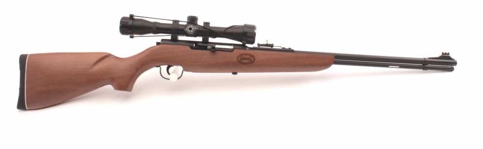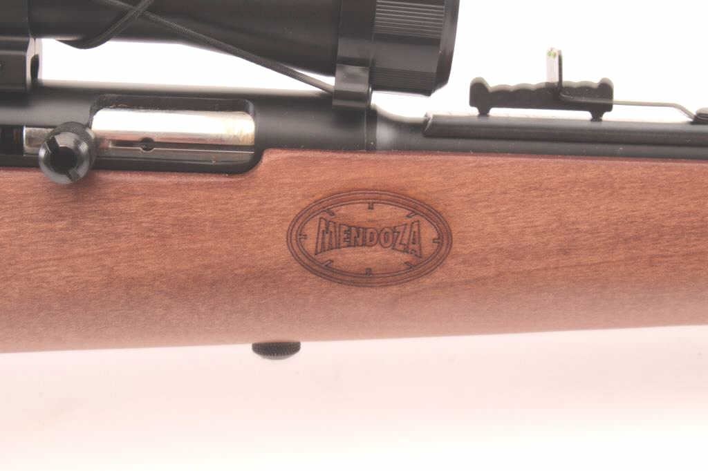 Mendoza Puma Semi-Auto rifle in .22 L.R. caliber with 21” barrel, wood pistol grip stock, rubber butt pad and Barska scope, S/N P22-00018. In like new condition showing little to no use. Est.: $150-$300