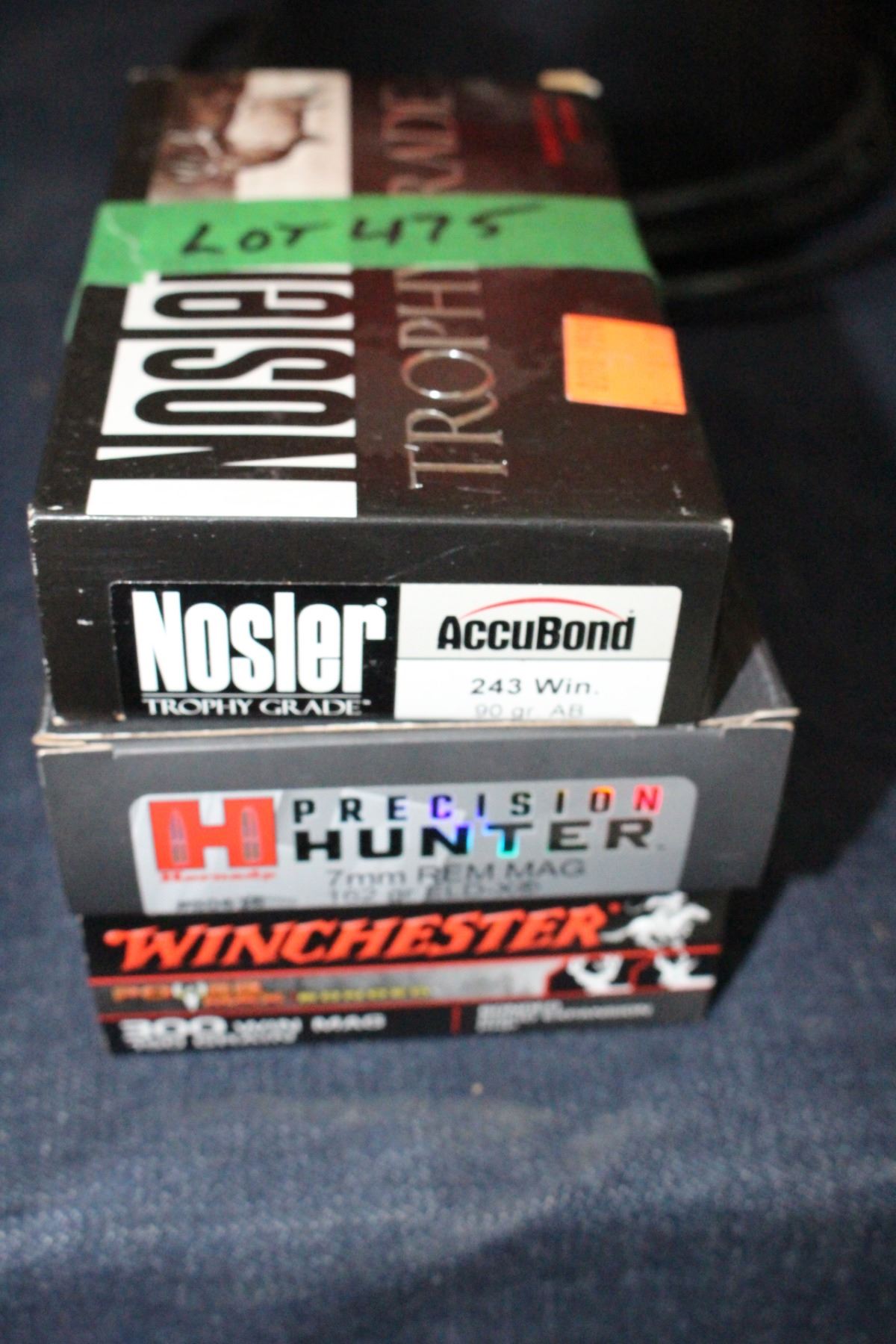 (1 box) Factory Nosler; 243 Win; 90 gr; (1 box) Factory Hornady 7mm Rem Mag.; 162 gr. ELD-X & (1 box) Factory Winchester 300 Win Mag.; 150 gr. PHP