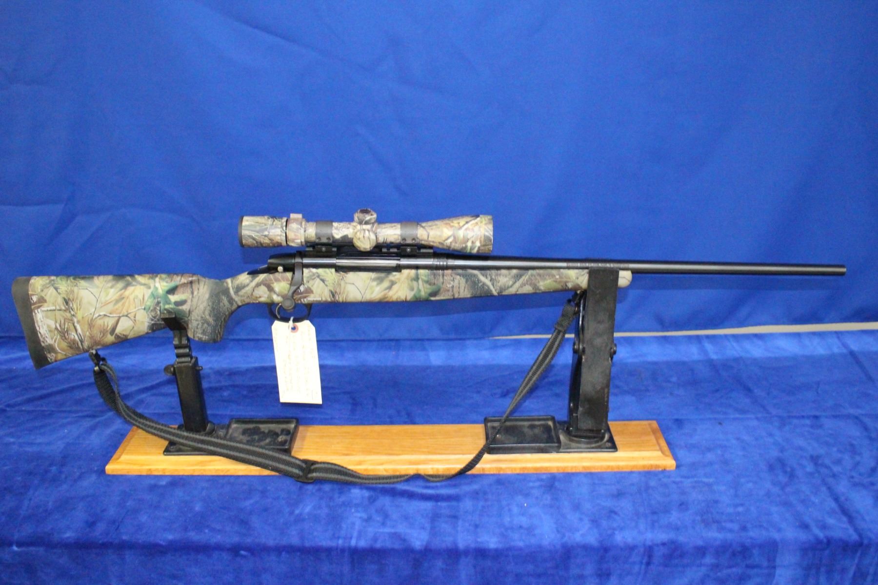 270 cal.; Bolt Action; 22" Barrel; Good, clean bore; w/3-9x40 Camo Scope; Synthetic Camo Stock; Very Good Condition; S/N 91724375