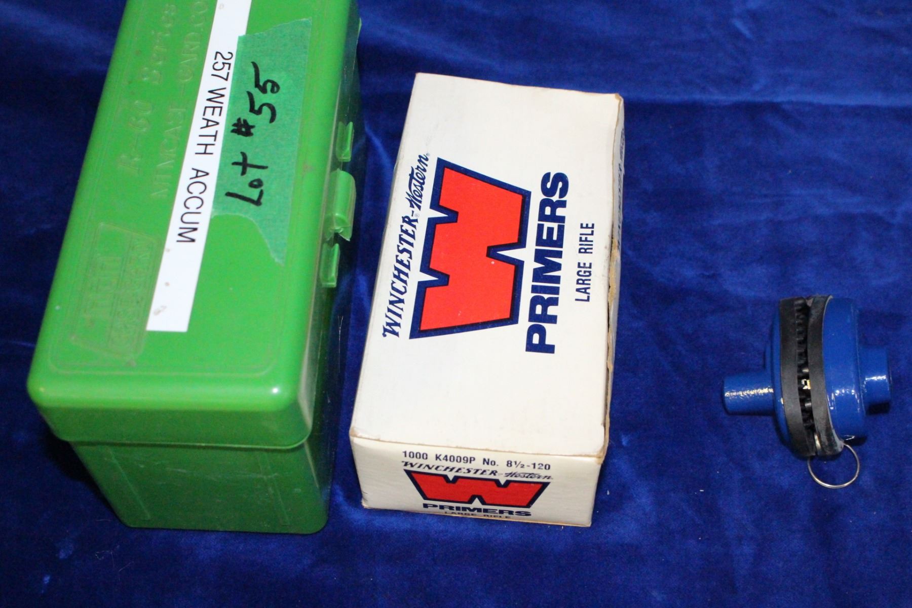 Lot 55 Large Rifle Primers (1 Box); 1 Box (46) of 257 Brass "Weatherby Accum." & 1 Trigger Lock