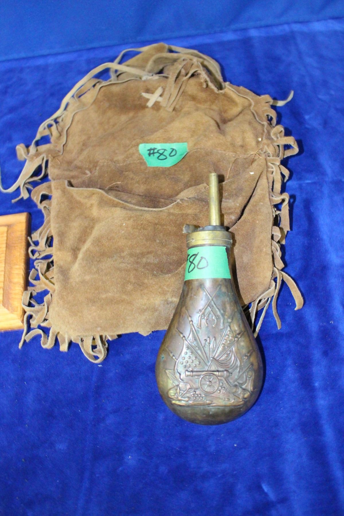 Lot 80 Lead Ball Pouch & a Powder Horn (Brass)