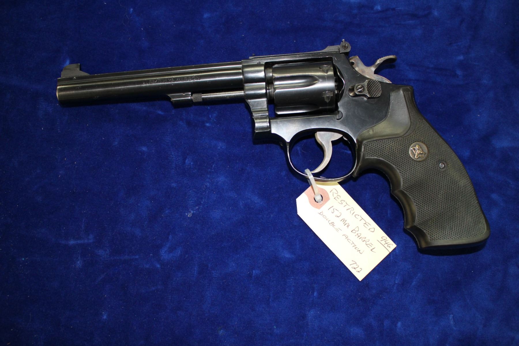 38 Special; Dbl Action; Rubber Grips; 152mm Barrel; Good, clean bore; Wear on the Cylinder; Good Condition; S/N K88579
