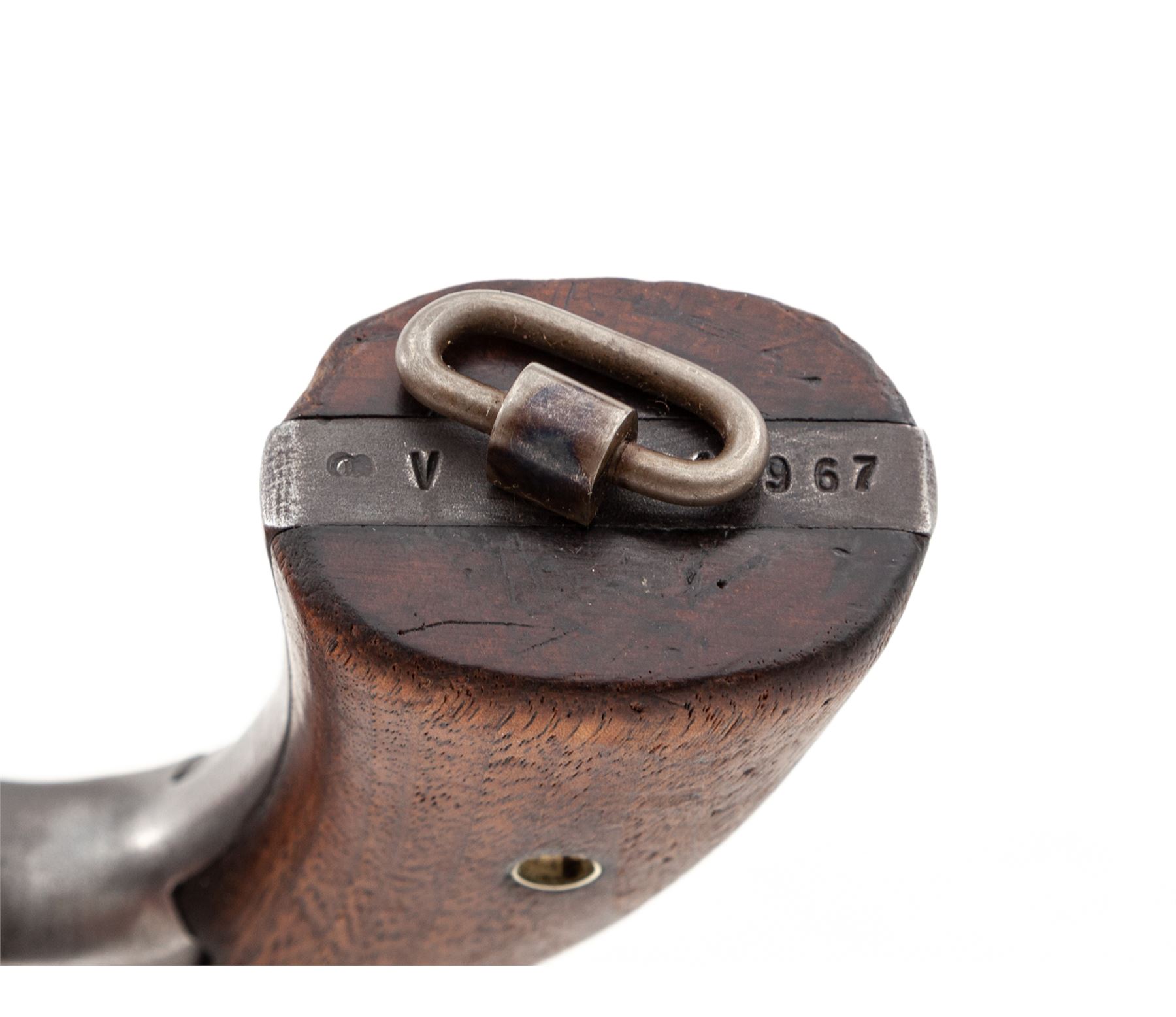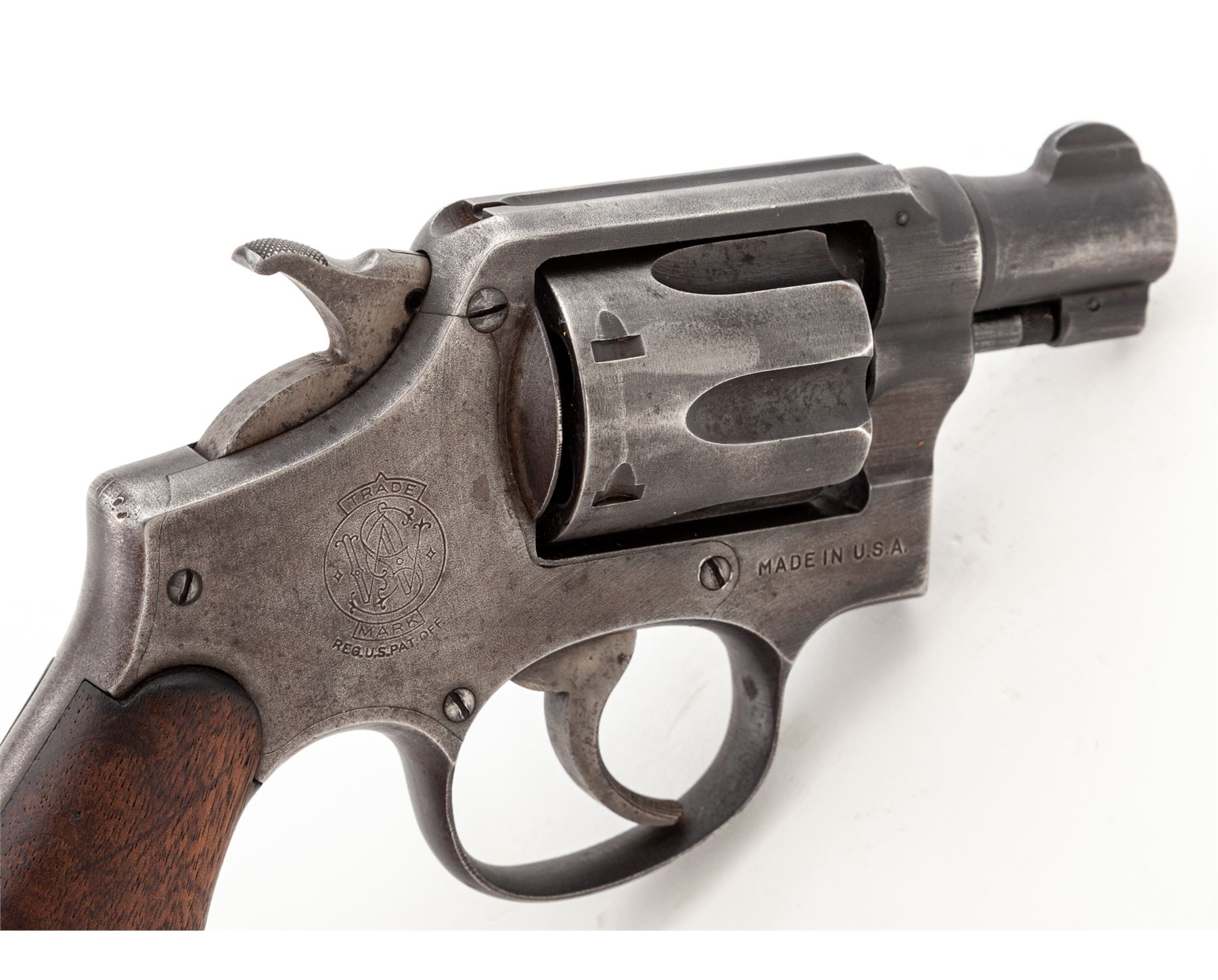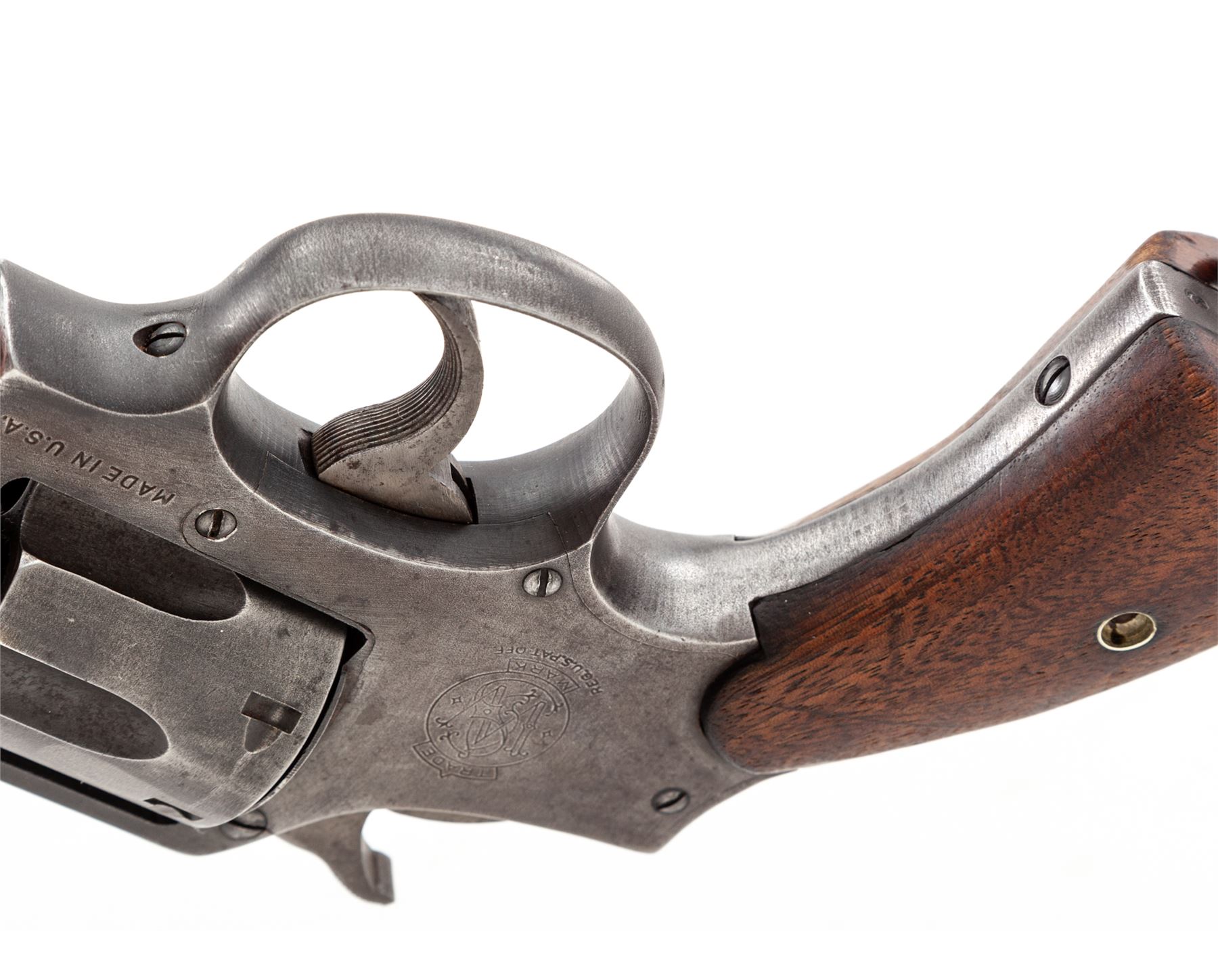 Smith & Wesson Victory Model Double Action Revolver, #V648967, .38 Spec. cal., 2'' barrel, dulite finish, matching numbered smooth walnut grips, with matching numbered cylinder and barrel. Shipped Aug. 27, 1944, to J. Howell Flourney, Shreveport, LA, with factory letter signed by S&W Historian Roy G. Jinks. The shipment to the Defense Supply Commission for this day was 500 units with 2'' barrels. Condition is fine retaining approx. 80% thinning dulite finish. Grips with smooth even wear. Smooth action, bright bore. Est.: $800-$1,200. (C&R/PPT)
