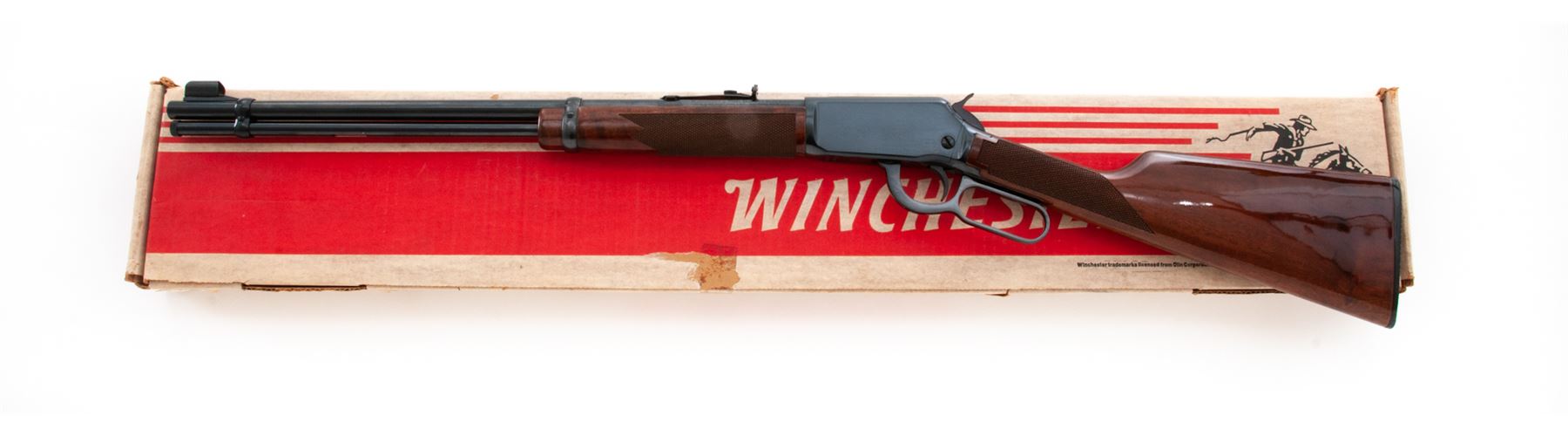 Winchester Model 9422 XTR Lever Action Rifle, #F490377, .22 S-L-LR cal., 20'' barrel, royal blue finish, checkered mahogany stock and forend, with Winchester black plastic buttplate. In original box with matching serial number. Condition is excellent retaining approx. 98% factory blue. Stock and forend are excellent. Good action, bright bore. Est.: $450-$650. (Modern)