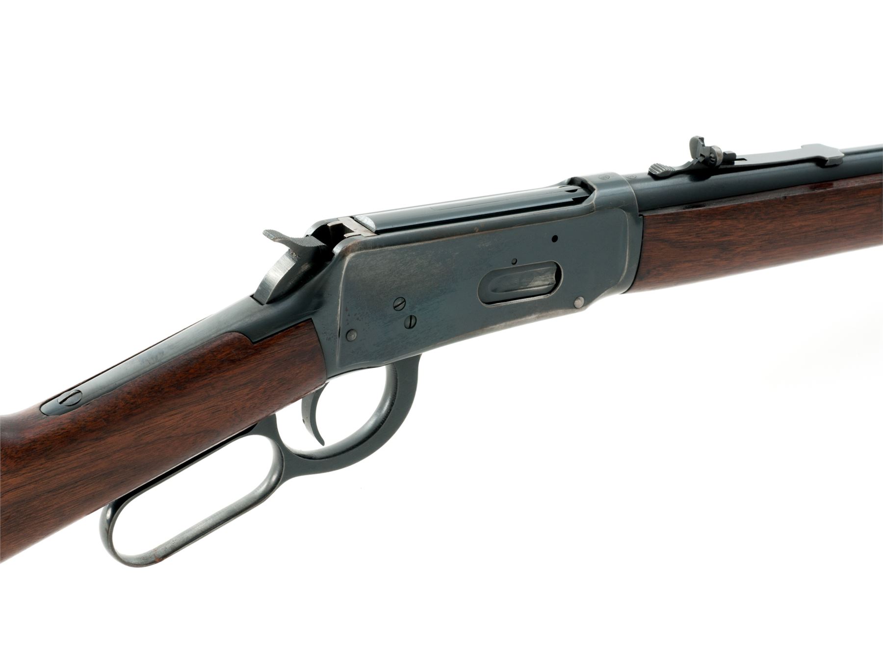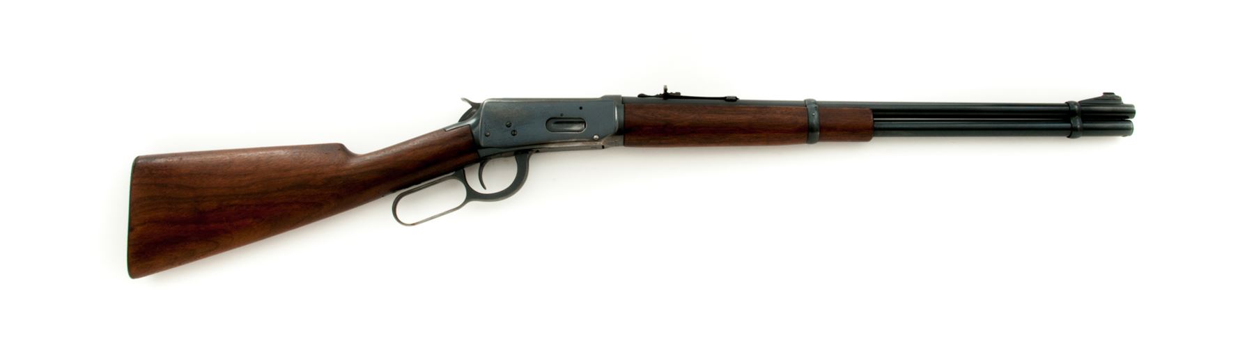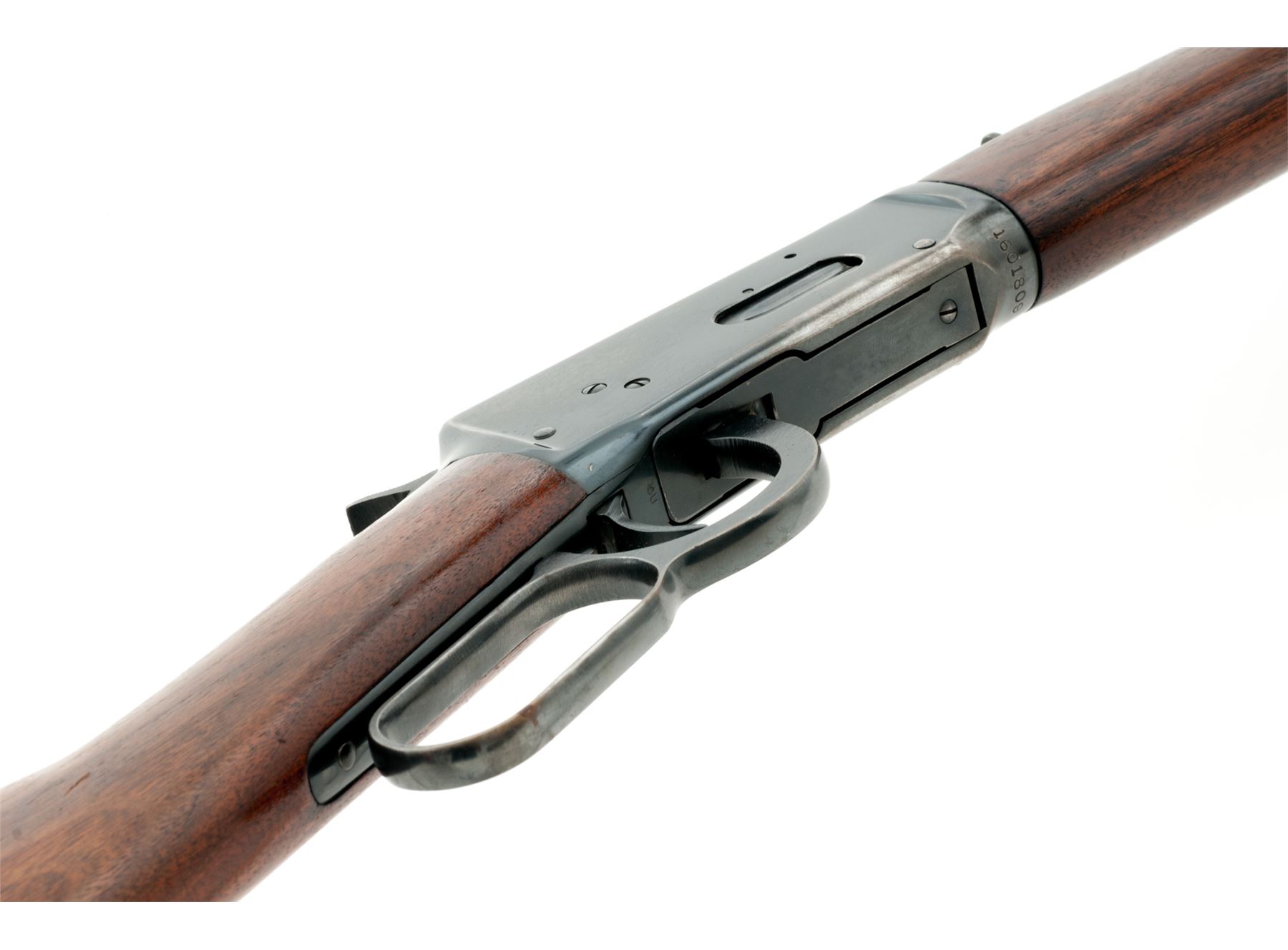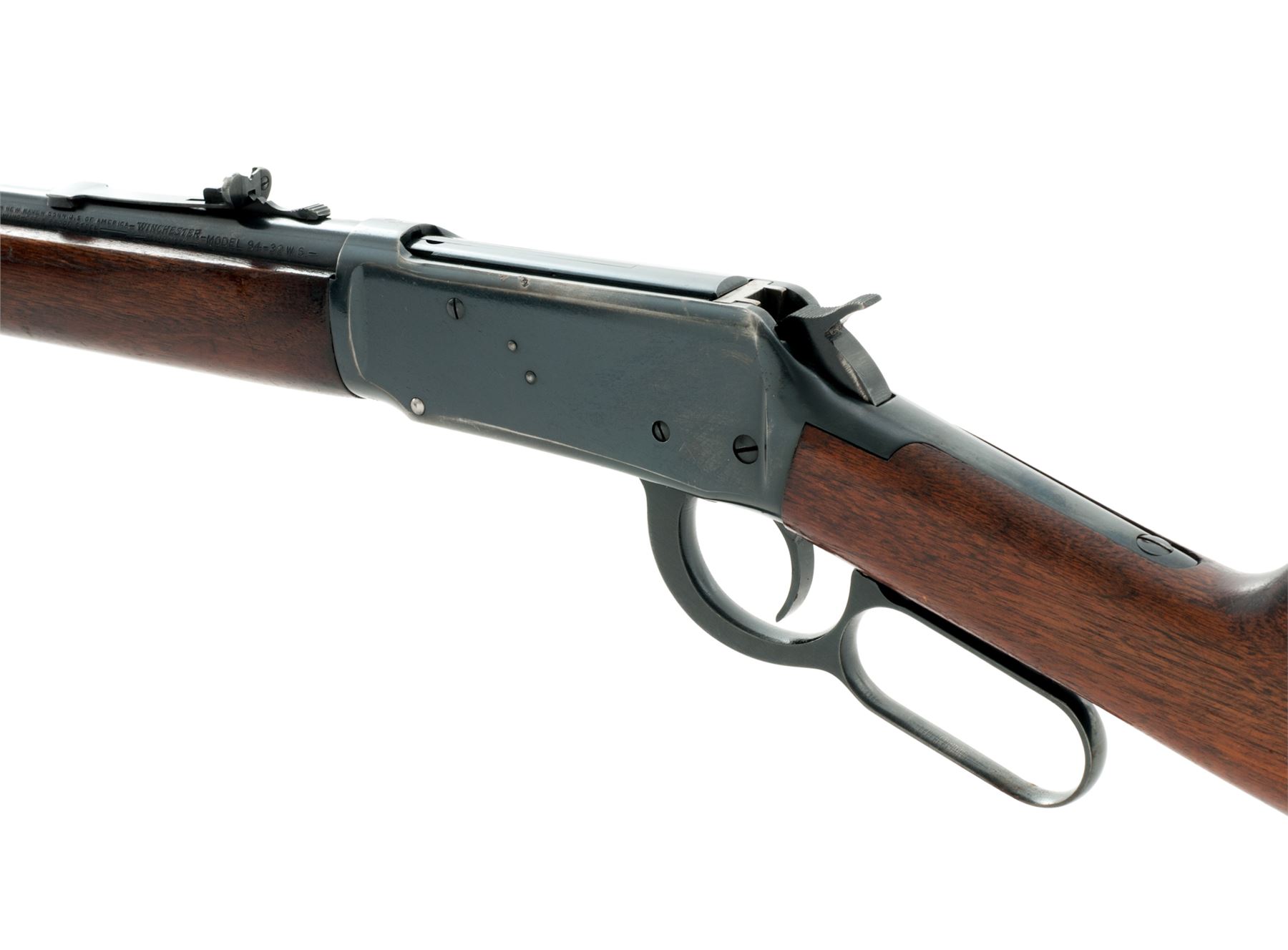 Pre-64 Winchester Model 94 Lever Action Carbine, #1601809, .32 WS cal., 20'' barrel, blue finish, walnut stock and forend, with checkered steel buttplate. Mfg'd 1949. Condition is excellent retaining approx. 90% original blue with most of the losses to high edges, some very minor scratching to both sides of frame, and two small pits to top left frame edge which does not affect either stretch or operation. Stocks retain approx. 65% original varnish with light scratches, no real dings or losses. Crisp action, excellent bore. Est.: $500-$750. (C&R)