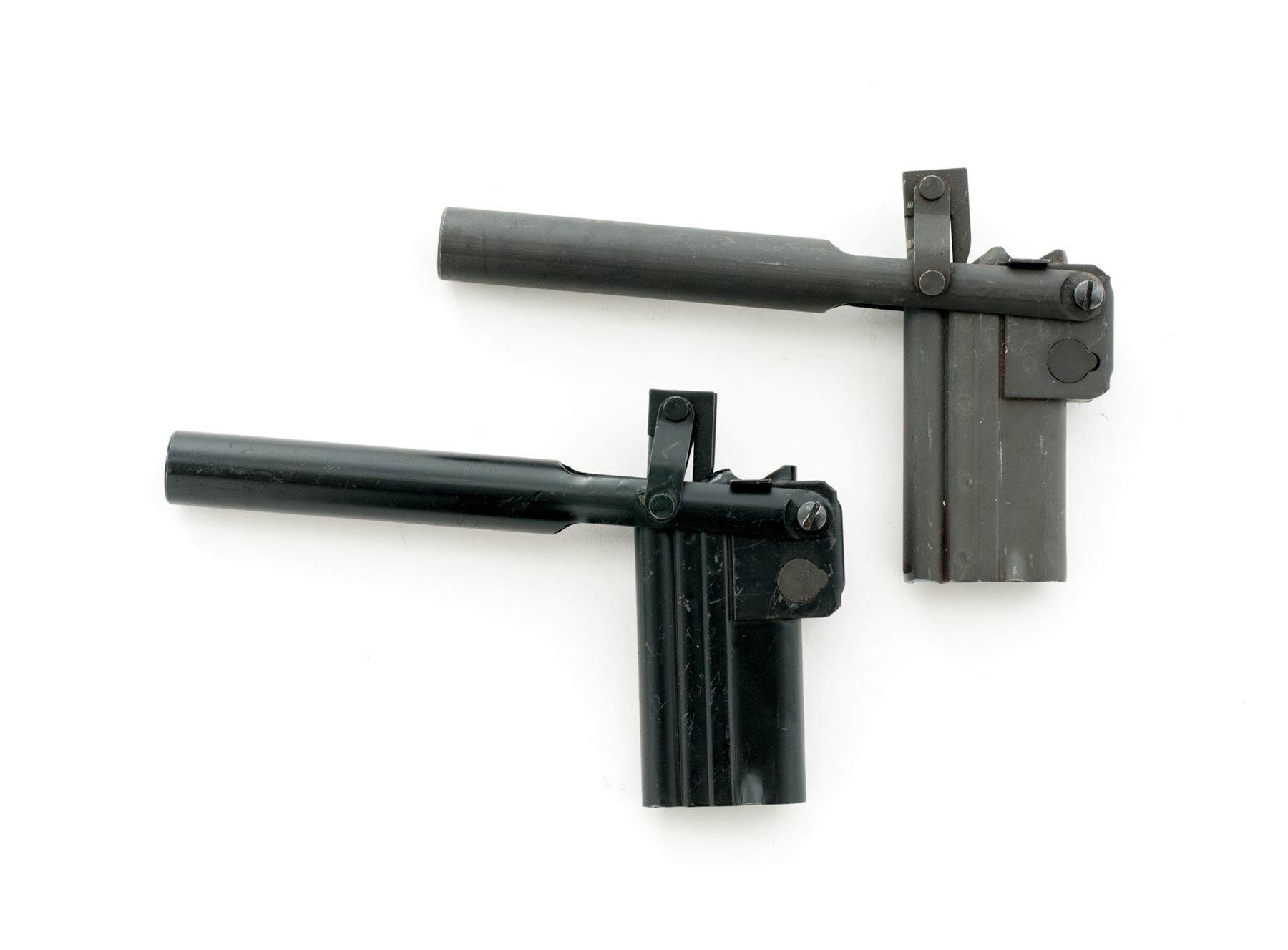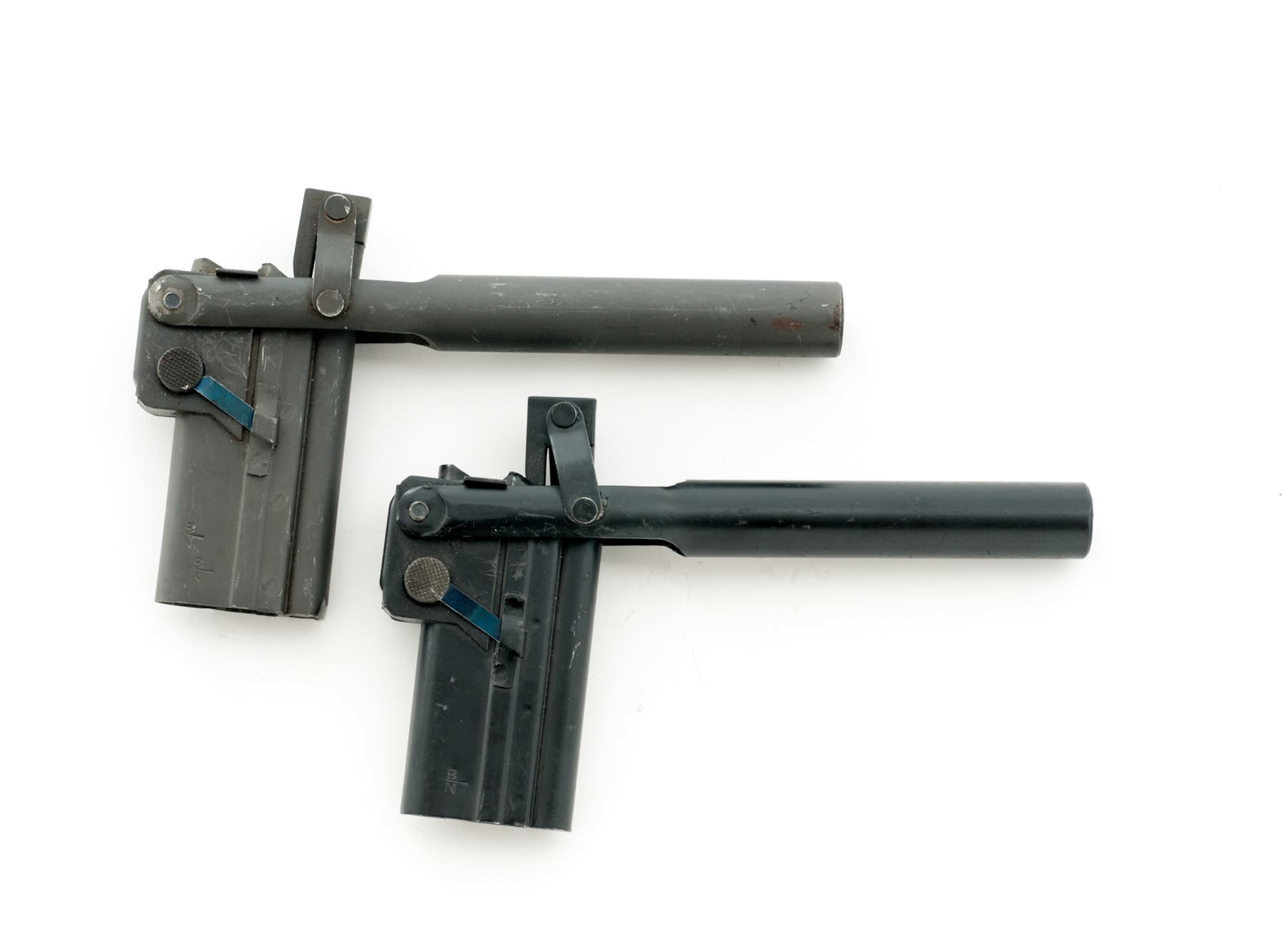 Lot of Two (2) Modern made Magazine Loaders for a P.08 Luger Pistol, both are marked ''B/N''. One with a black finish and the other with a phosphate finish. Condition is very good showing scattered surface scuffs and scratches to the finish. Est.: $200-$400/lot.