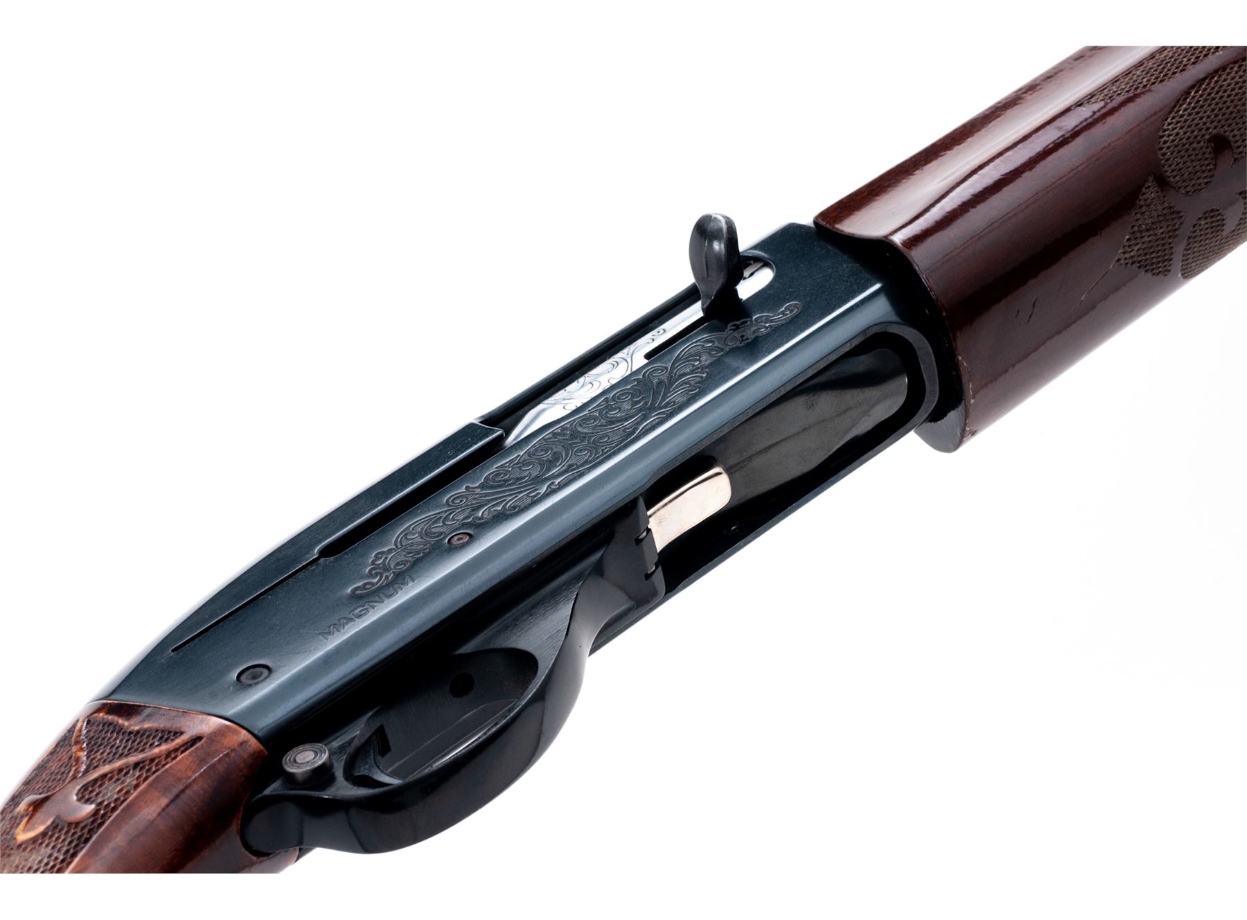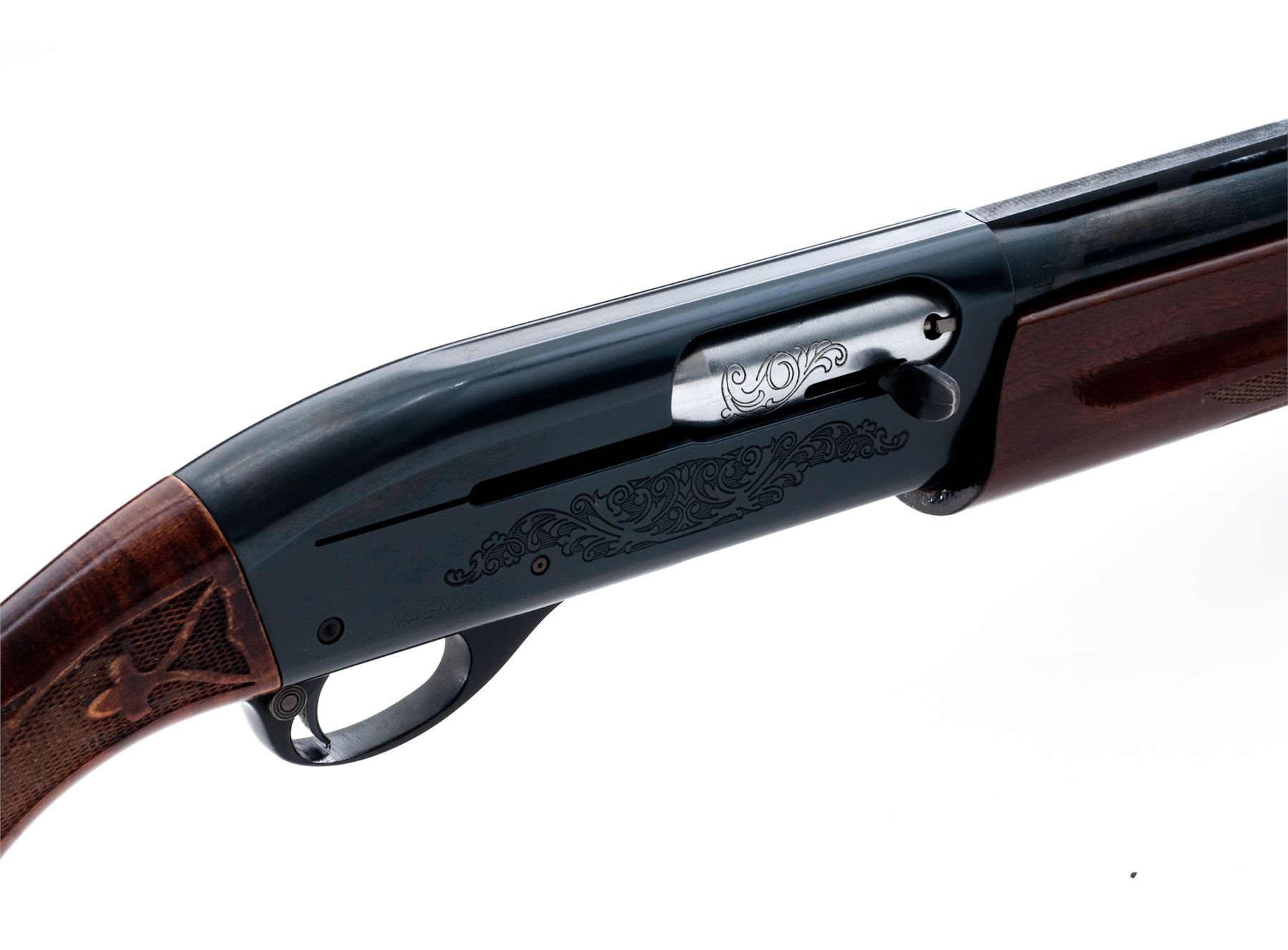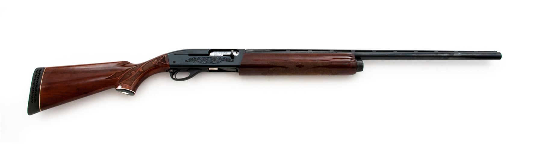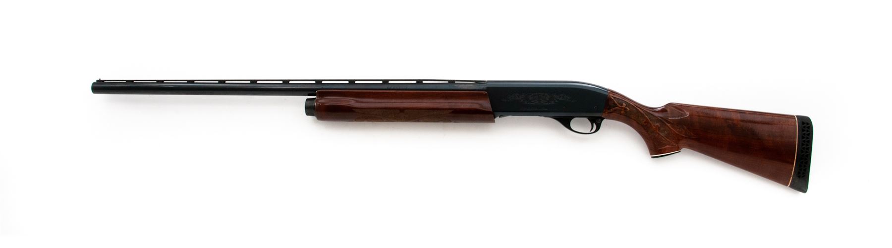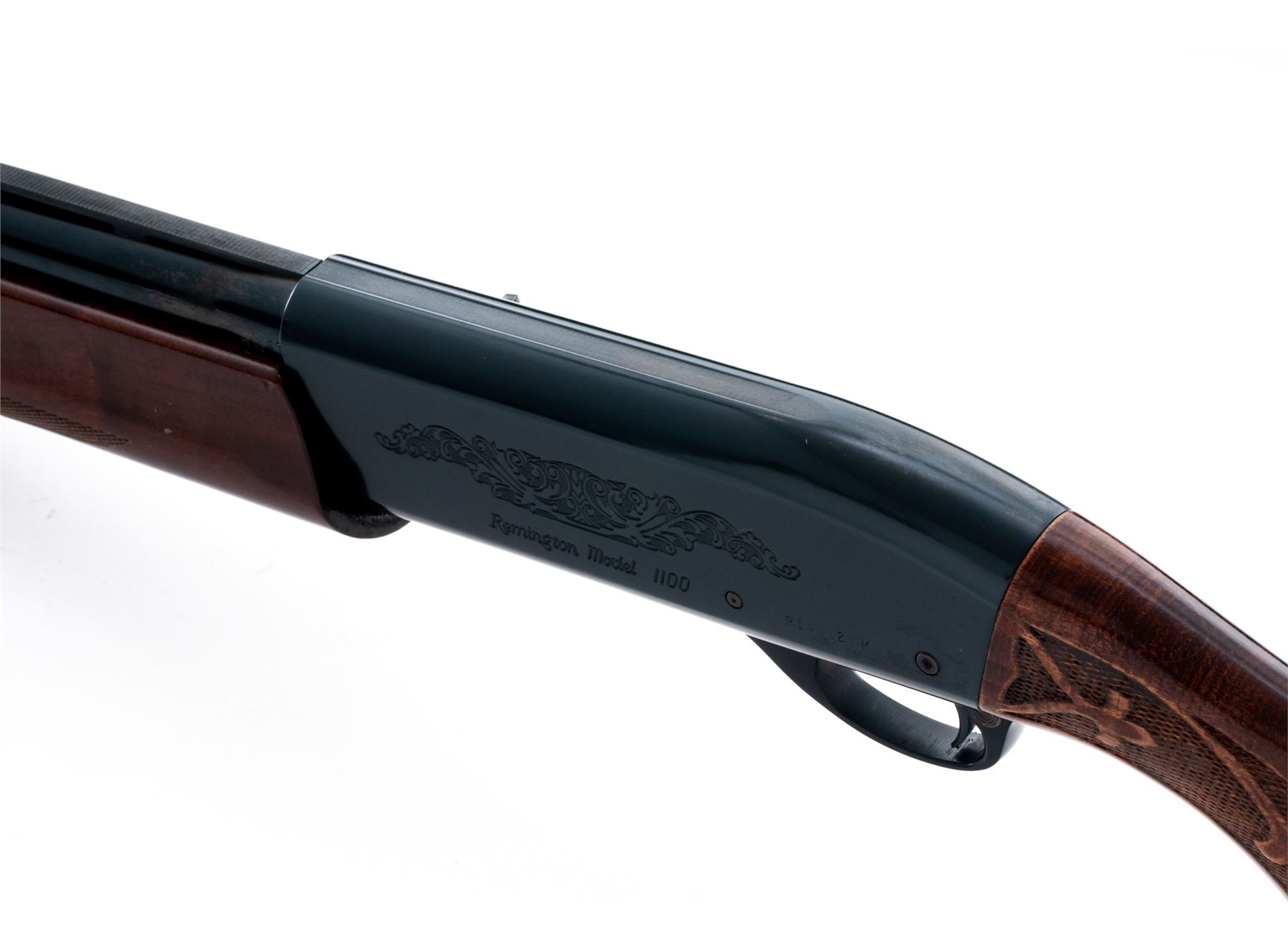 Remington Model 1100 Semi-Automatic Shotgun, #P140127M, 12 ga. mag. cal. for 3'' shells, 28'' vent rib barrel, pressed checkered pistol-grip mahogany stock, with Remington rubber butt pad. Condition is excellent, appearing as new, with only minor marks and scuffs to forend. Est.: $300-$500. (Modern)