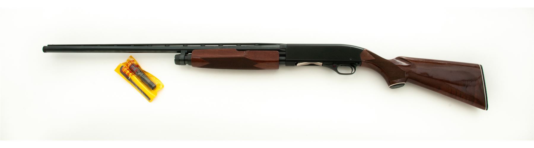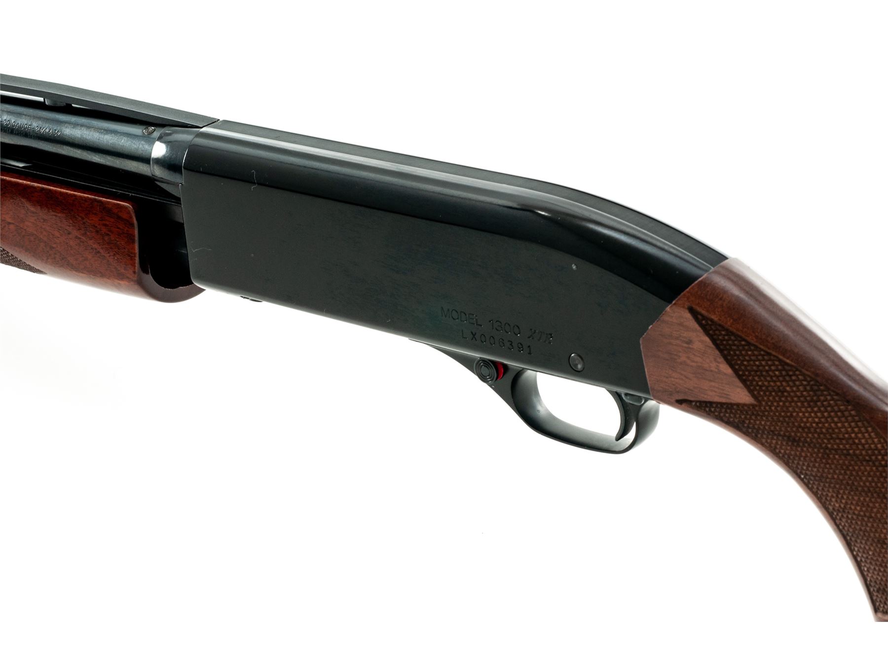 Winchester Model 1300 XTR Pump Action Shotgun, #LX006391, 20 ga. for 2-3/4'' & 3'' shells, 28'' vent rib barrel with three (3) choke tubes, blue finish, checkered pistol-grip mahogany stock, and Winchester plastic buttplate. Condition is excellent, appearing as new, with only the slightest marks from handling. Est.: $250-$450. (Modern)