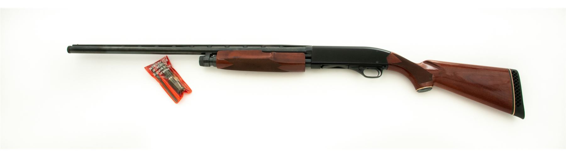 Winchester Model 1300 XTR Pump Action Shotgun, #LX061917, 12 ga. for 2-3/4'' & 3'' shells, 28'' vent rib barrel with three (3) choke tubes, blue finish, checkered pistol-grip mahogany stock, and Whiteline black rubber buttplate. Condition is excellent, appearing as new, with only the slightest marks from handling. Est.: $250-$450. (Modern)