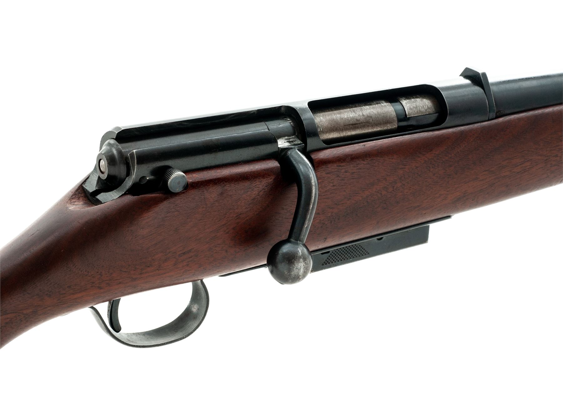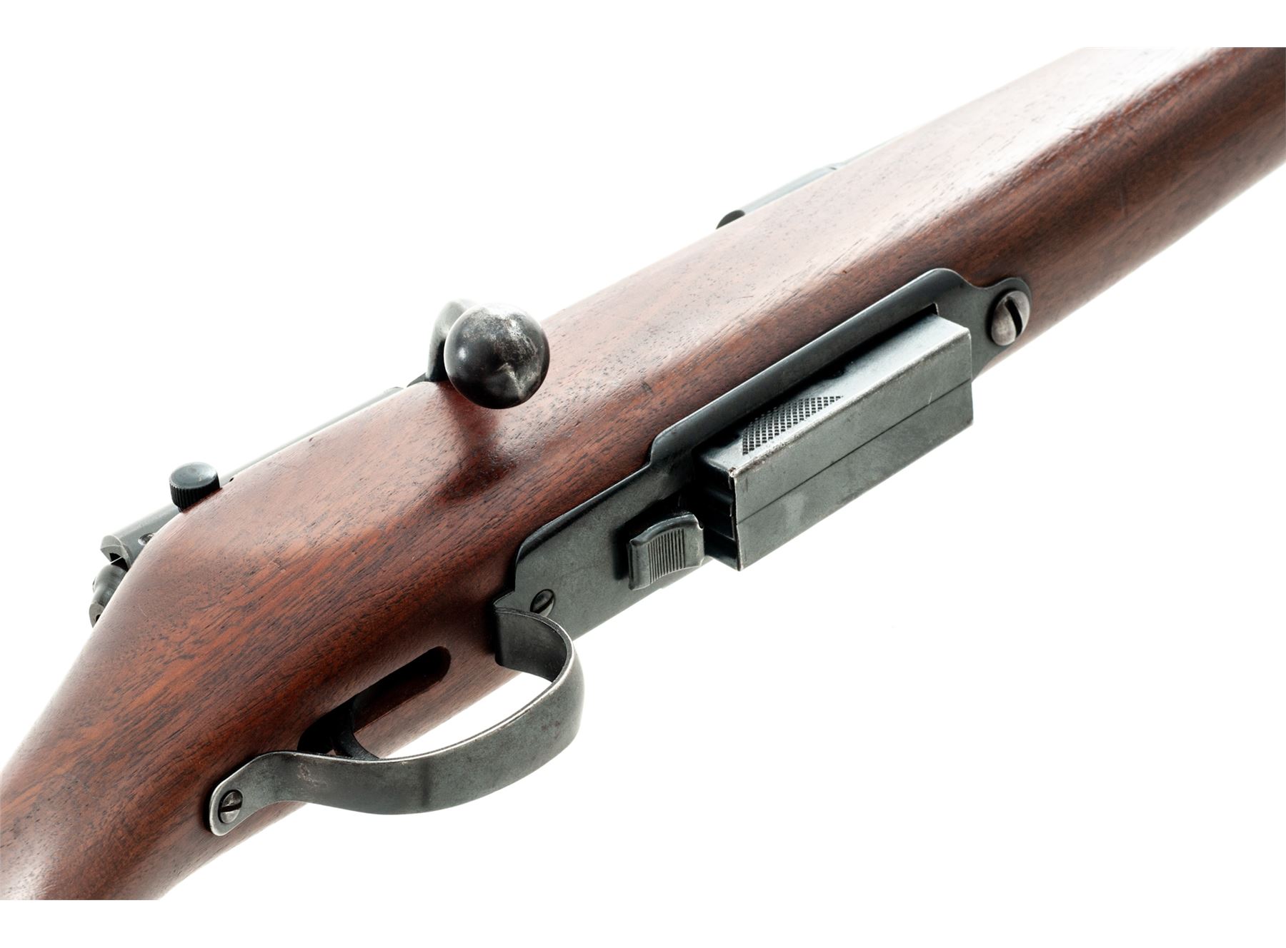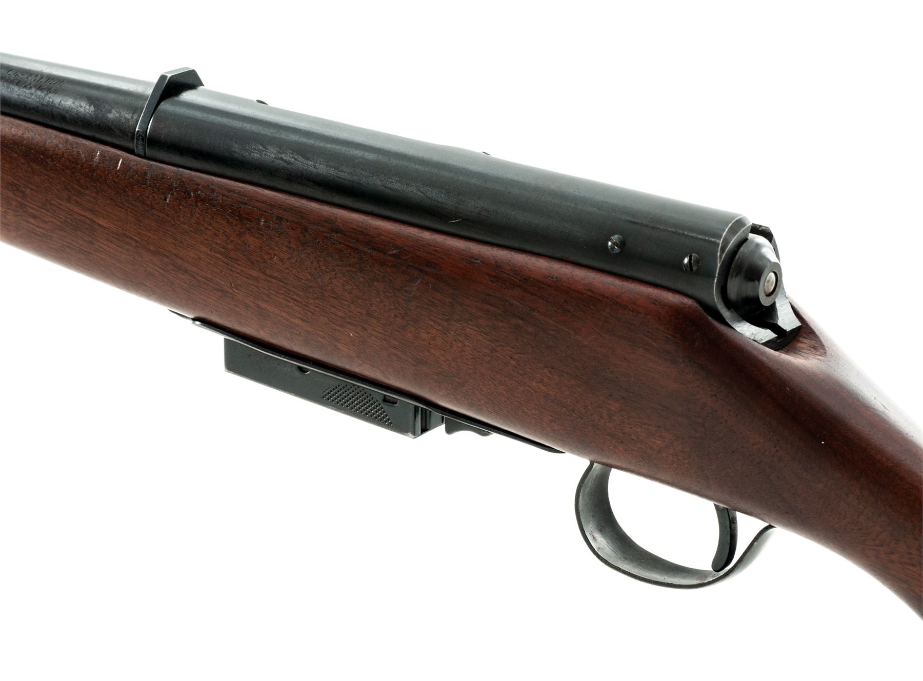 Marlin Model 55 Clip-Fed Single Barrel Bolt Action Shotgun, NVSN, 12 ga., blued 28'' round barrel with bead front sight marked on left at breech, ''The Marlin Firearms Co. - Est. 1870'' over ''New Haven, Conn. U.S.A. - Model 55 - 12 Ga.'' in two lines; blued receiver, bolt handle, cartridge magazine, floorplate and loop triggerguard; oil-stained walnut pistol-grip halfstock with rubber buttpad. Condition is excellent, and probably unfired, showing minimal handling marks to barrel and stock; complete with warning hang tag. Action is smooth; bore is brilliant. Est.: $250-$400. (C&R)