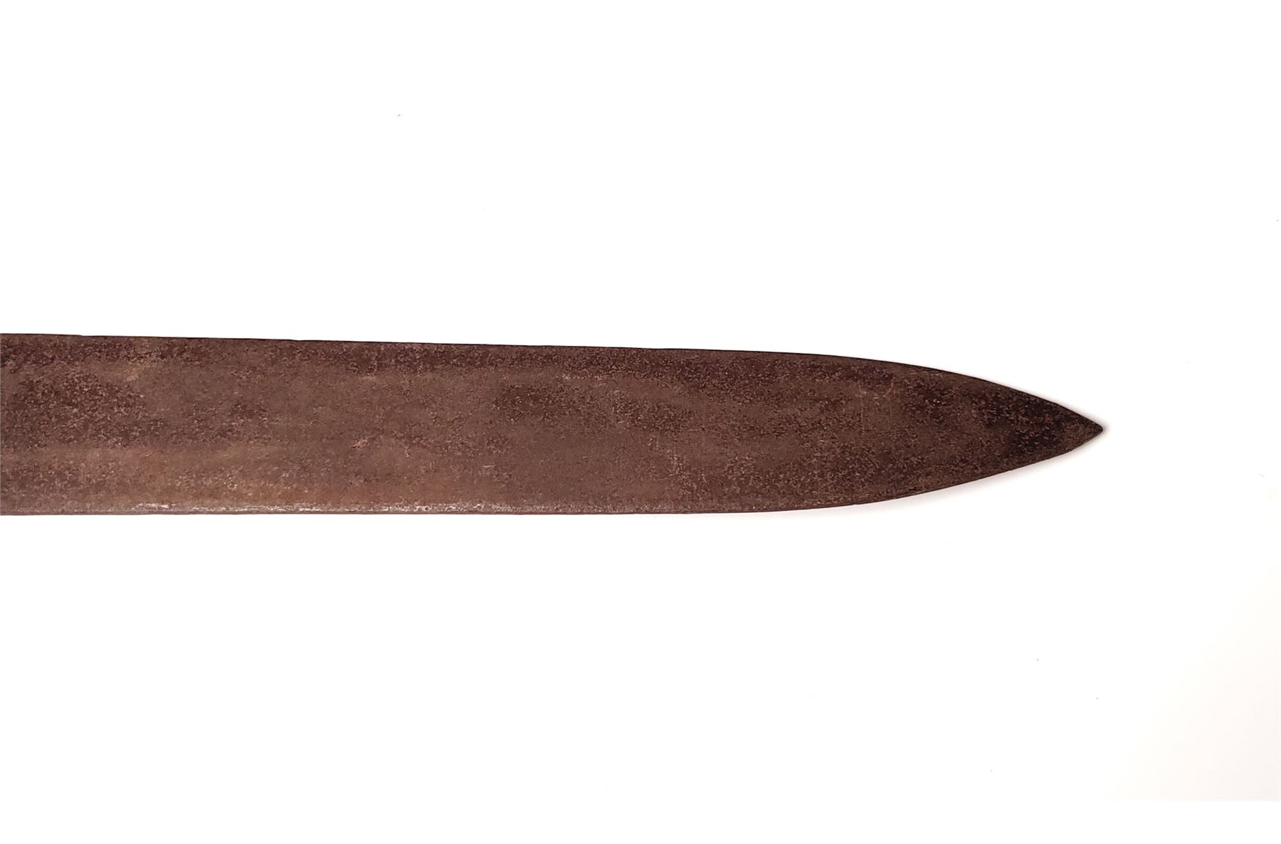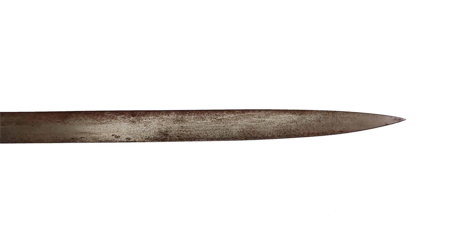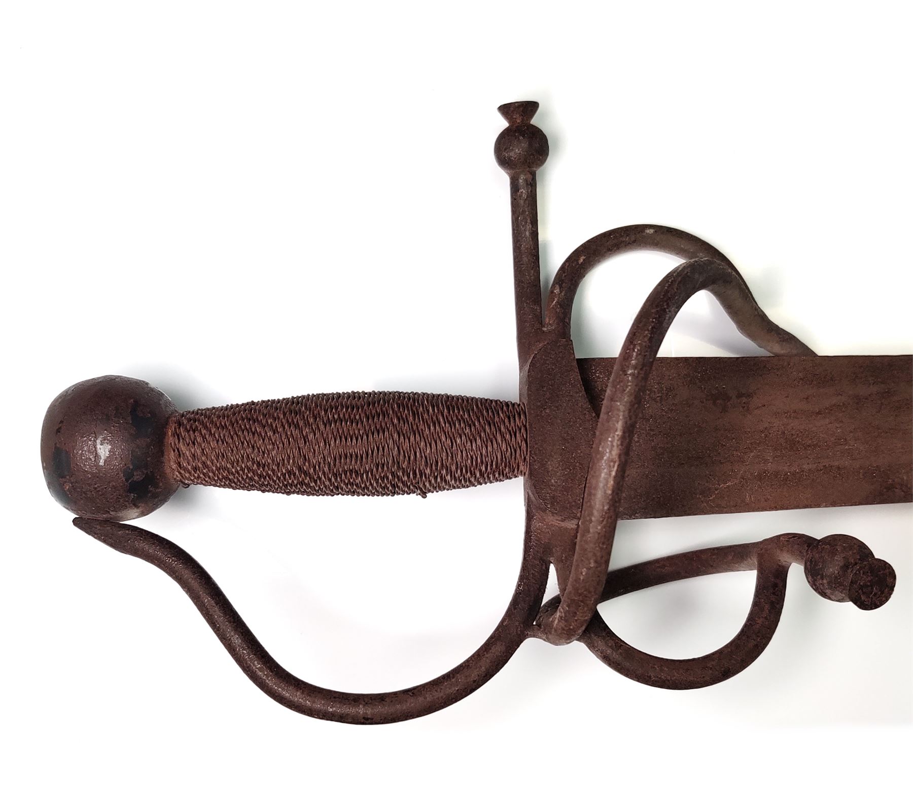 Lot of Three (3) Misc. Swords: (1) Imperial German Enlisted Sword, 31.5'' blade, with nickel-plated dove's head pommel. Wire-wrapped grip remains intact. (2) Imperial Army Sword, 31.5'' blade, with pierced guard featuring Prussian bird with crown. Wire-wrapped grip and emblem intact. Later era frog attached. (3) Reproduction English back sword, 33'' blade, with wire-wrapped grip. All are in fair to good condition. All blades are well rusted and unmarked. Est.: $150-$250/lot.