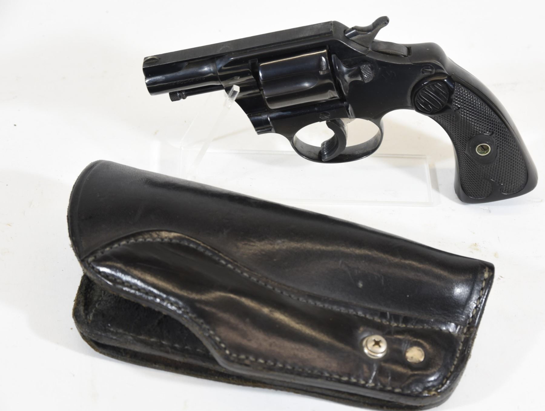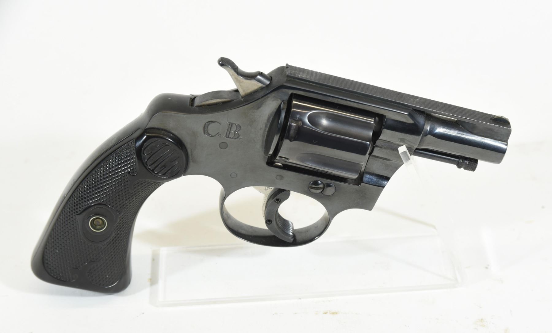 Prohibited, revolver, 32 S&W, 54mm barrel, SN 180227. Grips very good, bluing has been redone, bore excellent. Butt marked TPF No 732, right side frame marked CB. Comes with black holster.